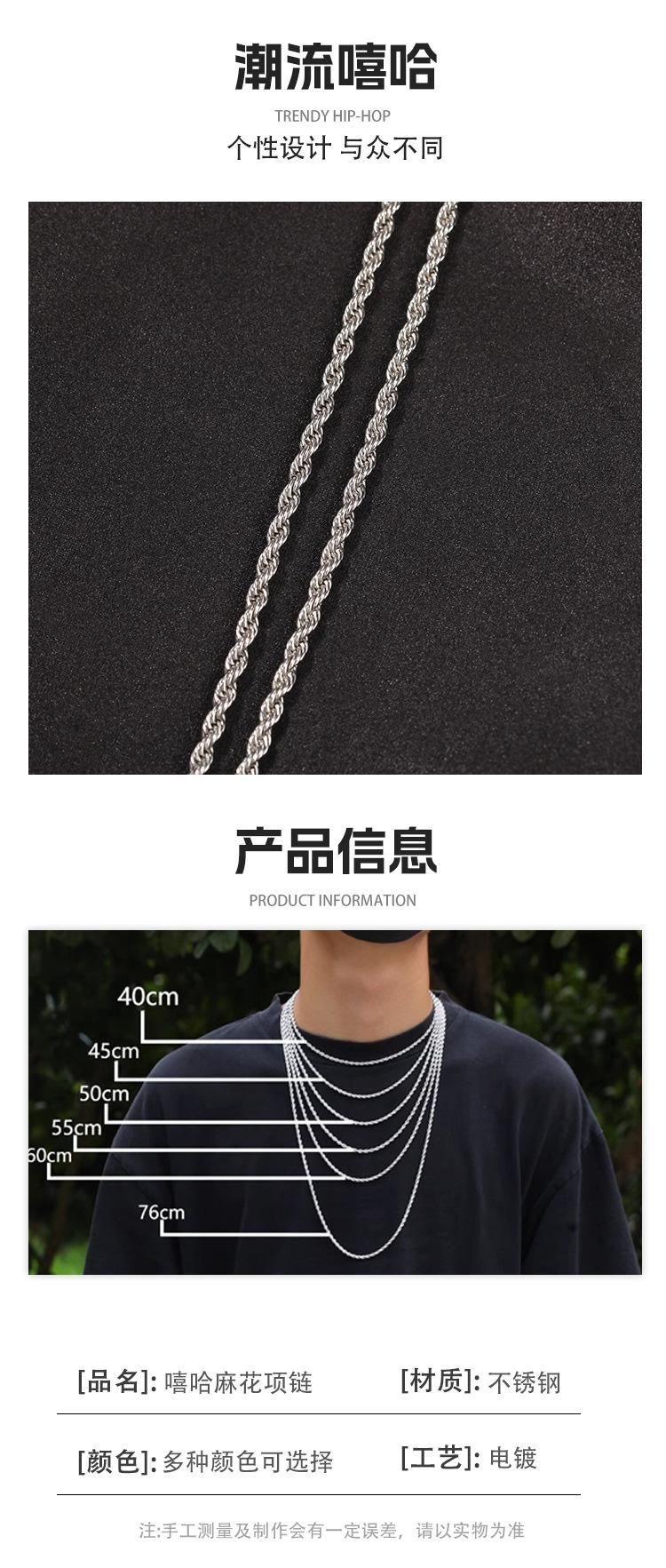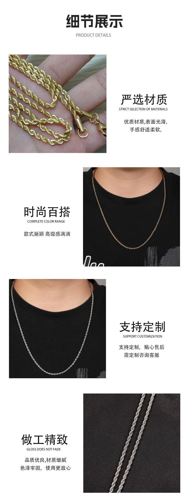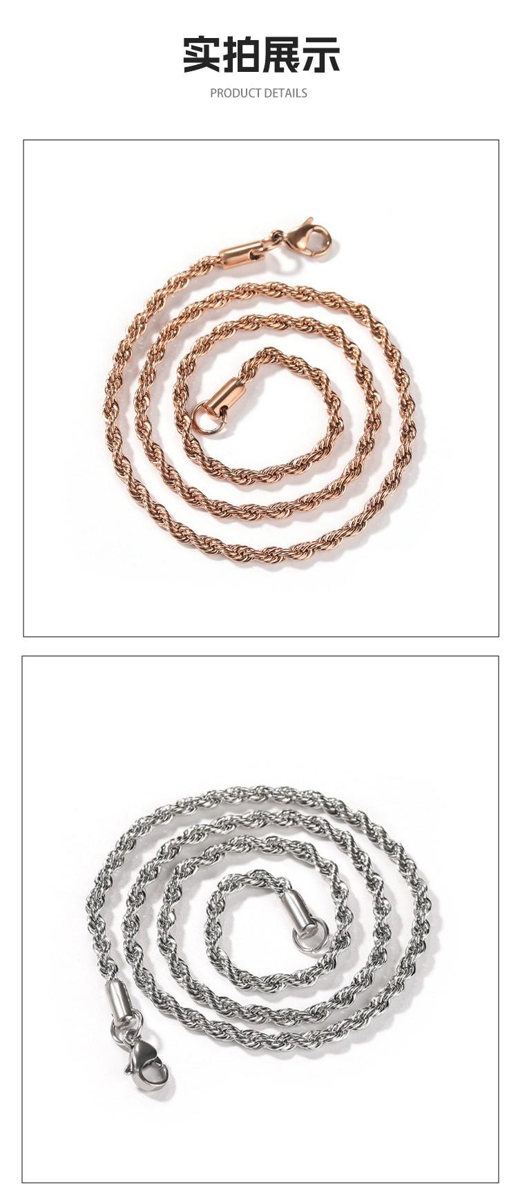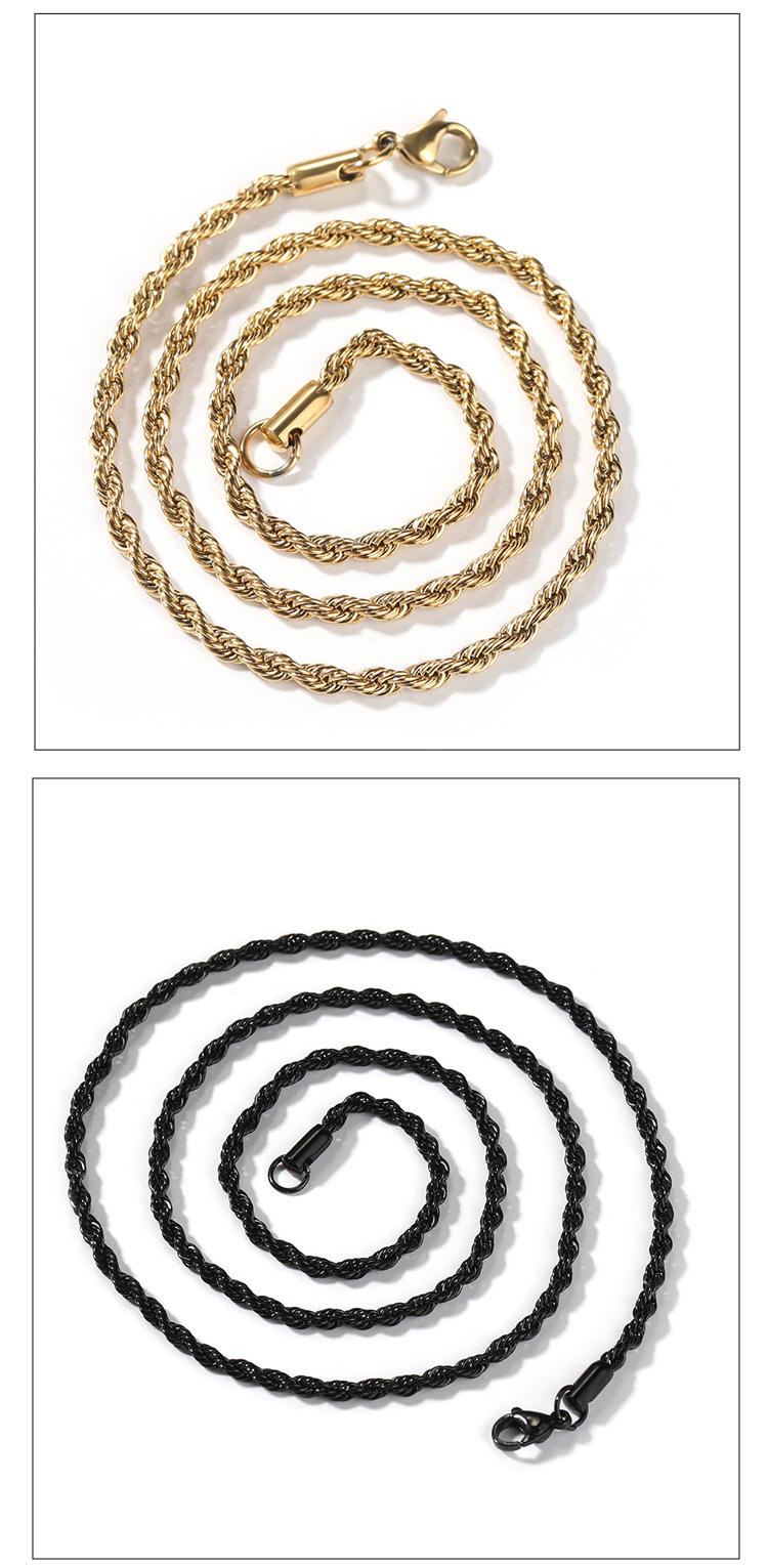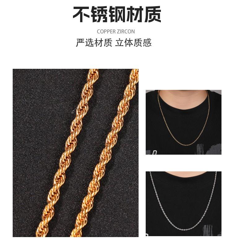 Collares Europeos y Americanos para Niños Hip-Hop Versátil Acero Inoxidable Oro Cadena Twist Nicho Cadena Lisa Cadena de Cuerda Torcida Joyería al Por Mayor