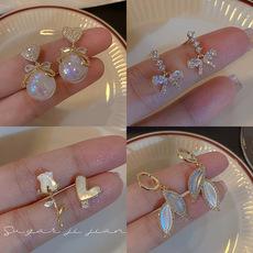 Pendientes de plata de ley 925 con diseño de aguja y circonitas brillantes, de alta gama, con temperamento femenino, al por mayor.