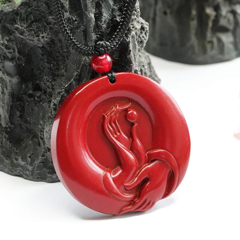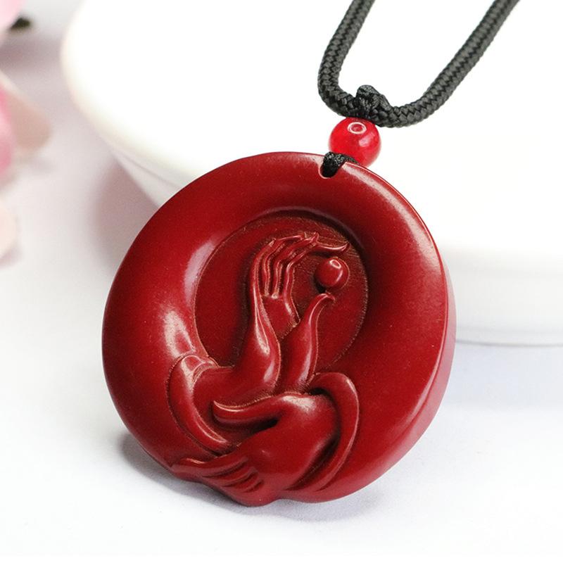Colgante de cinabrio Yanyu con arena de oro púrpura y mano de Buda, collar con entrega al por mayor de fábrica YZS3081308