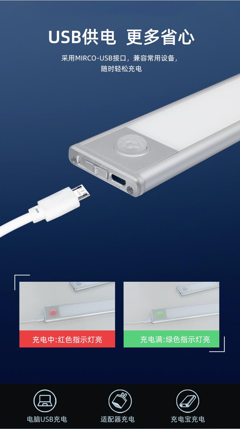 Lámpara de inducción de cuerpo humano inteligente con USB, lámpara de armario con carga inalámbrica, lámpara de capa con cableado gratuito, lámpara de gabinete de vino LED creativa, lámpara de gabinete