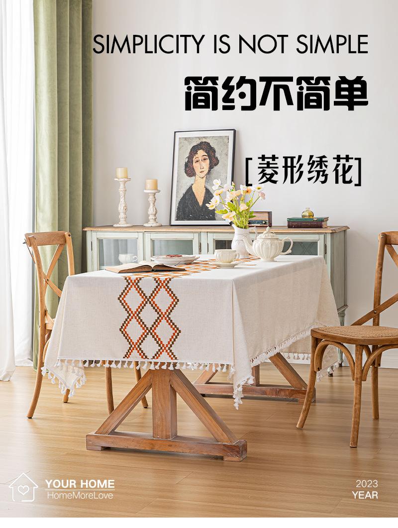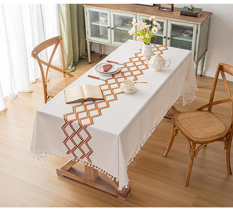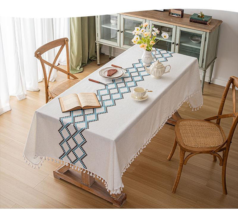 Nuevo mantel geométrico nórdico bordado de diamantes encaje de borlas imitación algodón lino rectangular para mesa de comedor, mesa de centro