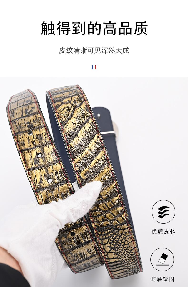 Cinturón de piel de cocodrilo para hombre, nuevo, de piel auténtica, con hebilla automática, para pantalones casuales.