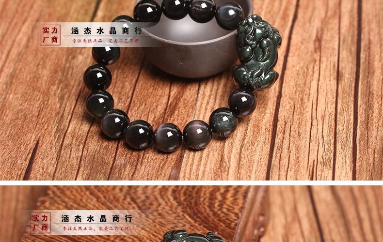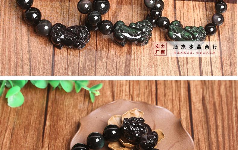 Pulsera Pixiu de Obsidiana Ojo de Arcoíris Natural al por Mayor para Hombres y Mujeres, Cuentas Budistas, Joyería de Moda Pixiu