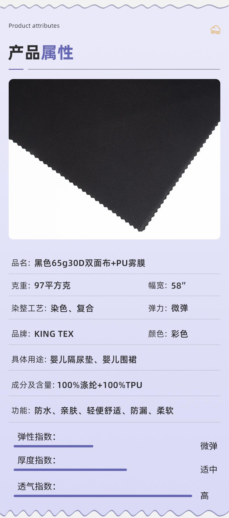 Protector de pañal para bebé, tela impermeable de TPU, color negro, 30D, de doble cara, con película antivaho de poliuretano, tejido compuesto impermeable y a prueba de fugas.