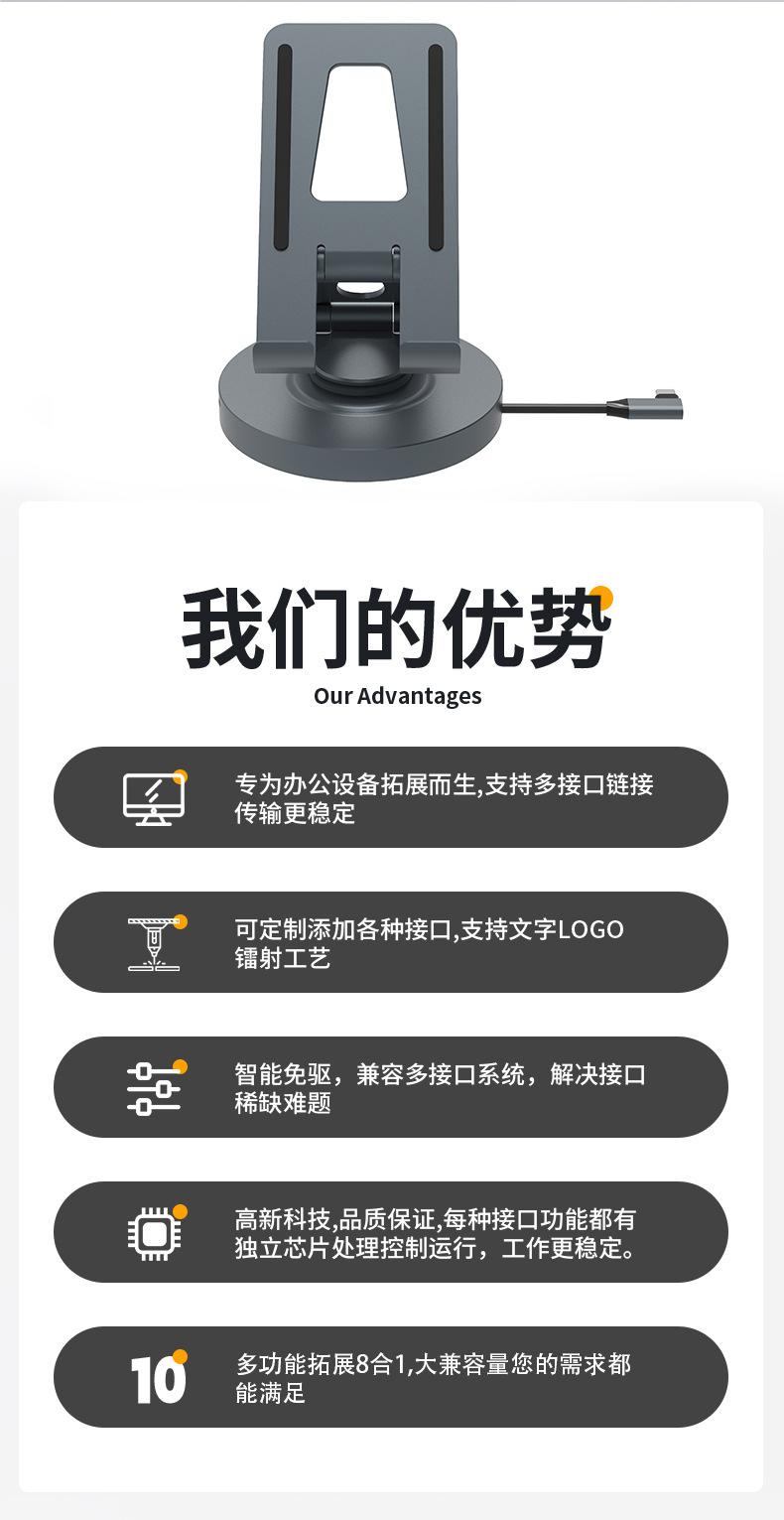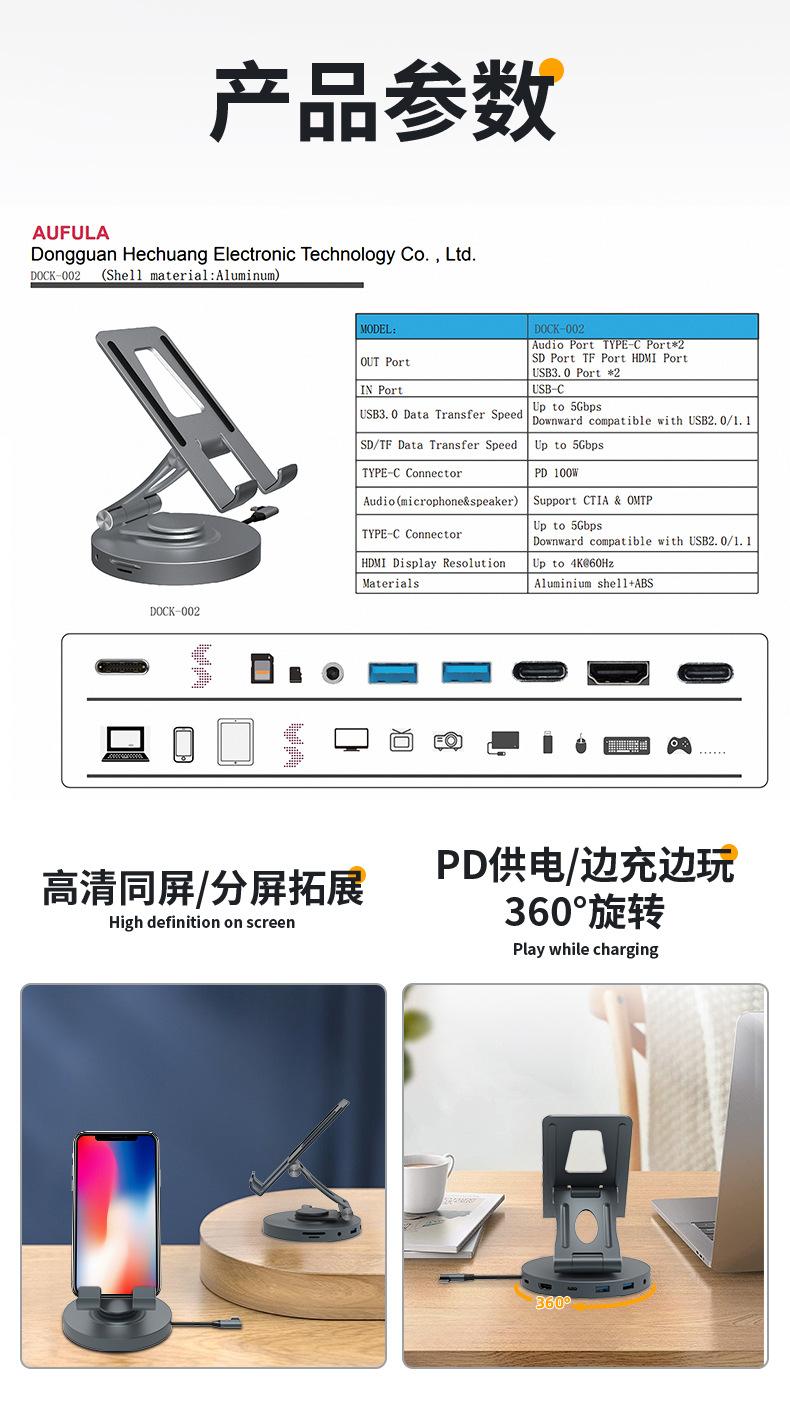 Estación de acoplamiento para soporte de teléfono móvil, plegable, ajustable, para tableta, con interfaz múltiple, universal y multifunción.