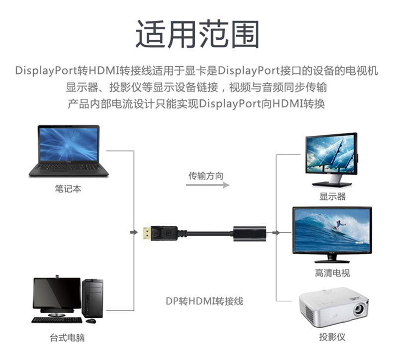 2. Admite la conversión de señal DisplayPort a señal HDMI;