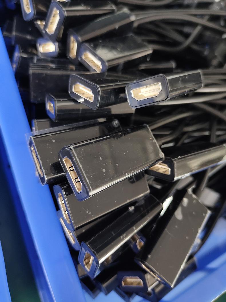 Entrada: DisplayPort macho de 20 pines; Salida: HDMI hembra de 19 pines.