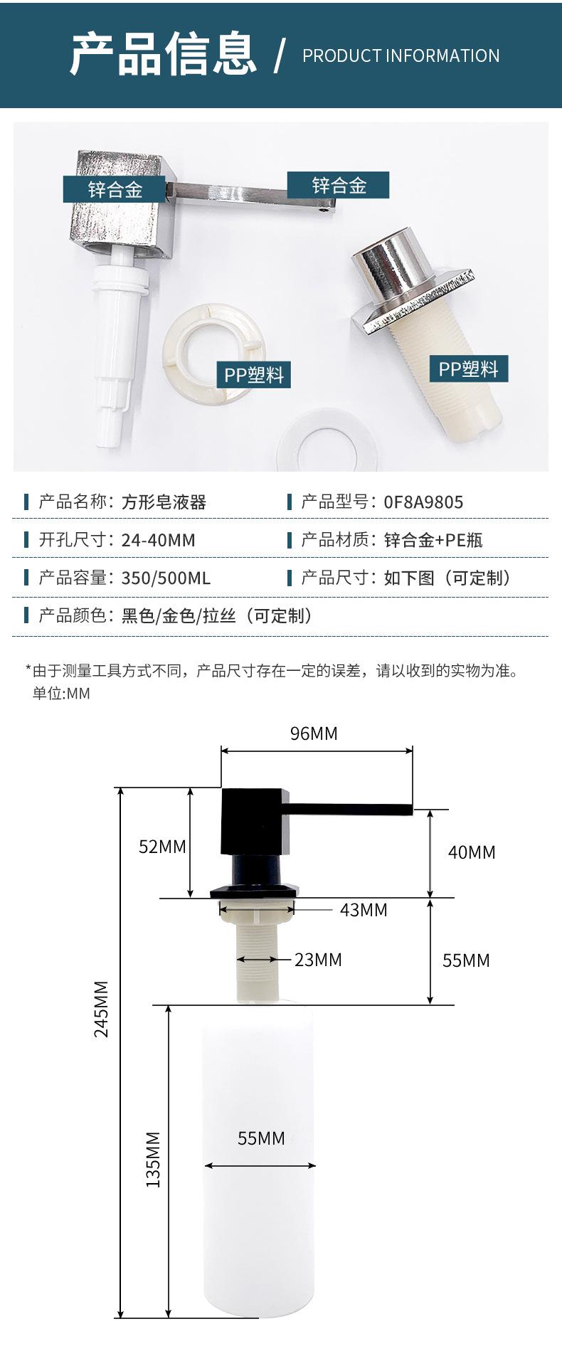 Dispensador de jabón Daifa Cross-border de aleación de zinc caliente para fregadero de cocina con cabezal de bomba cuadrado a presión