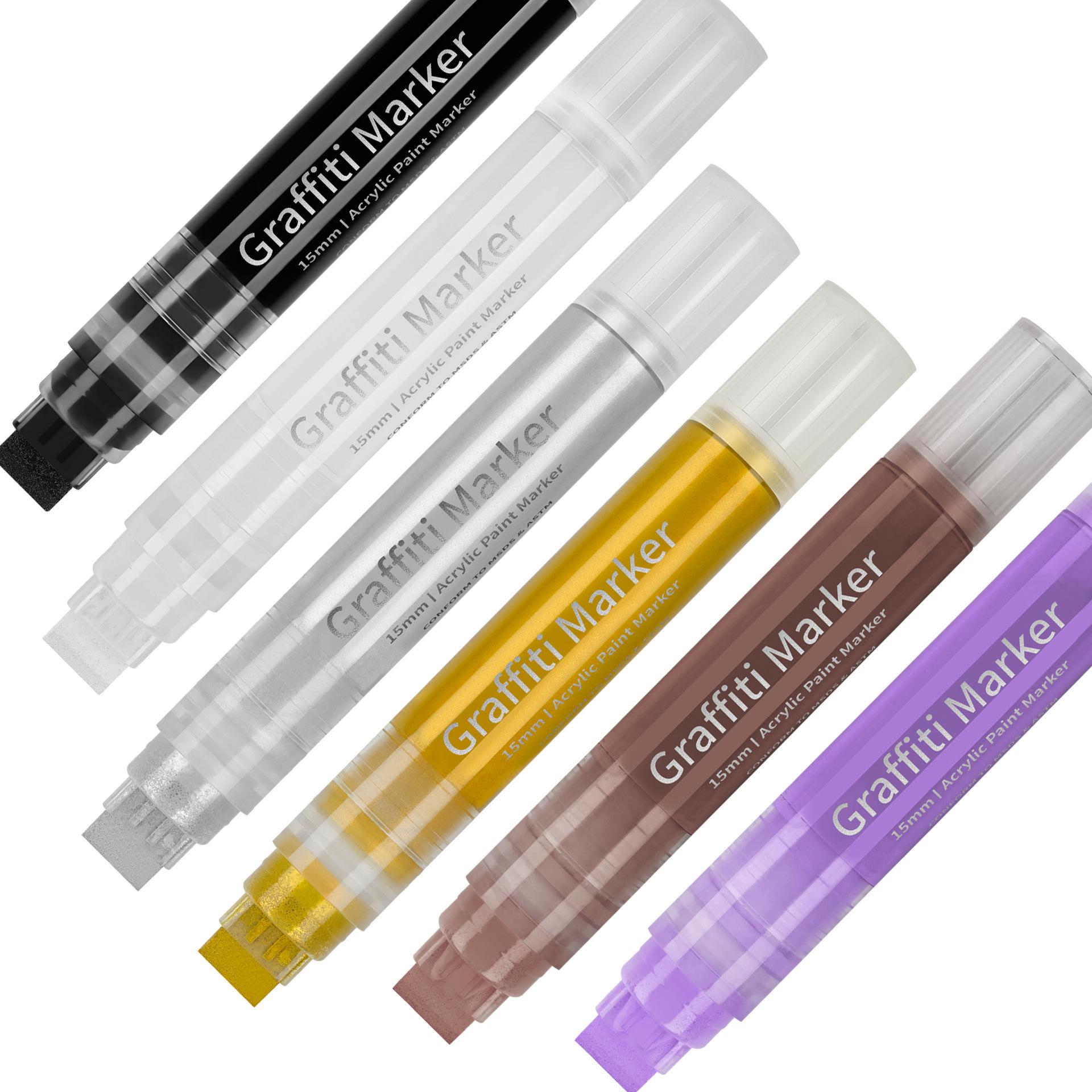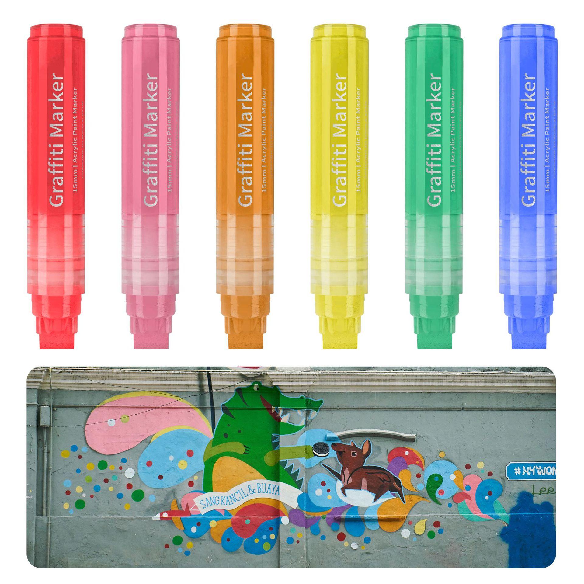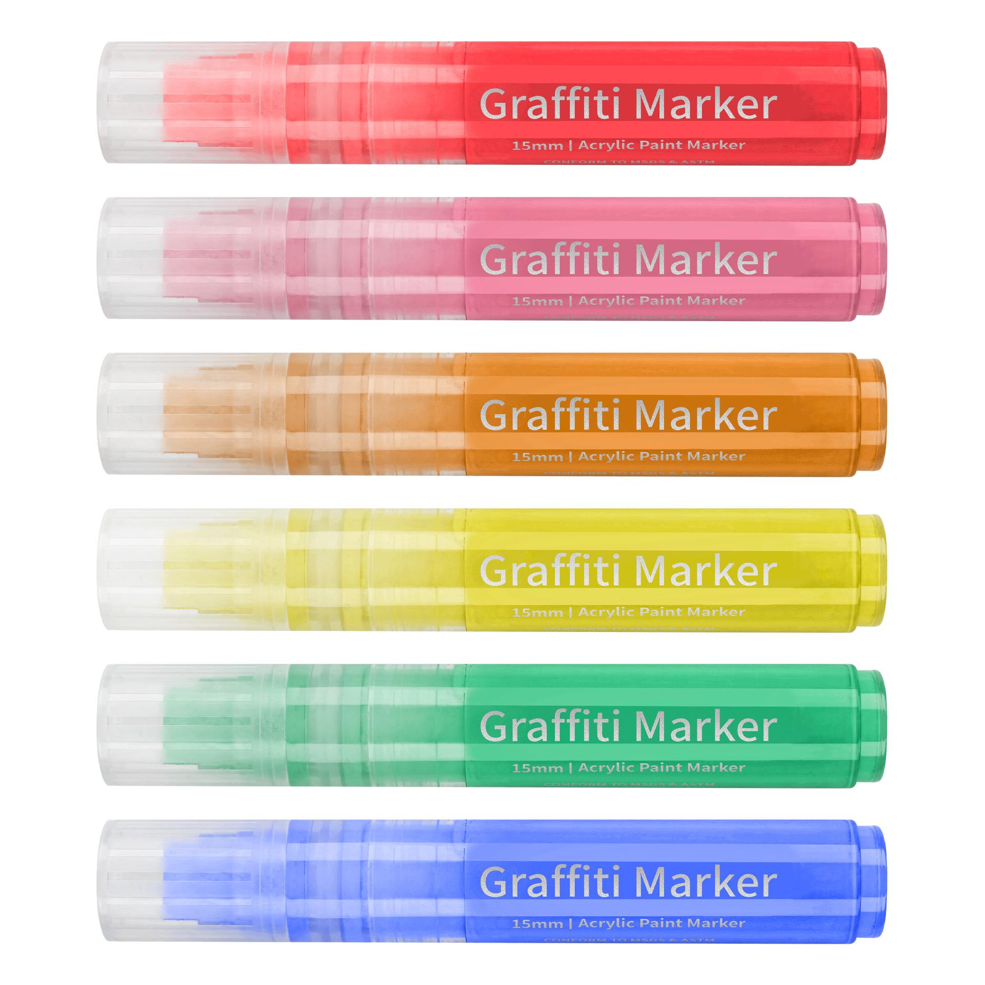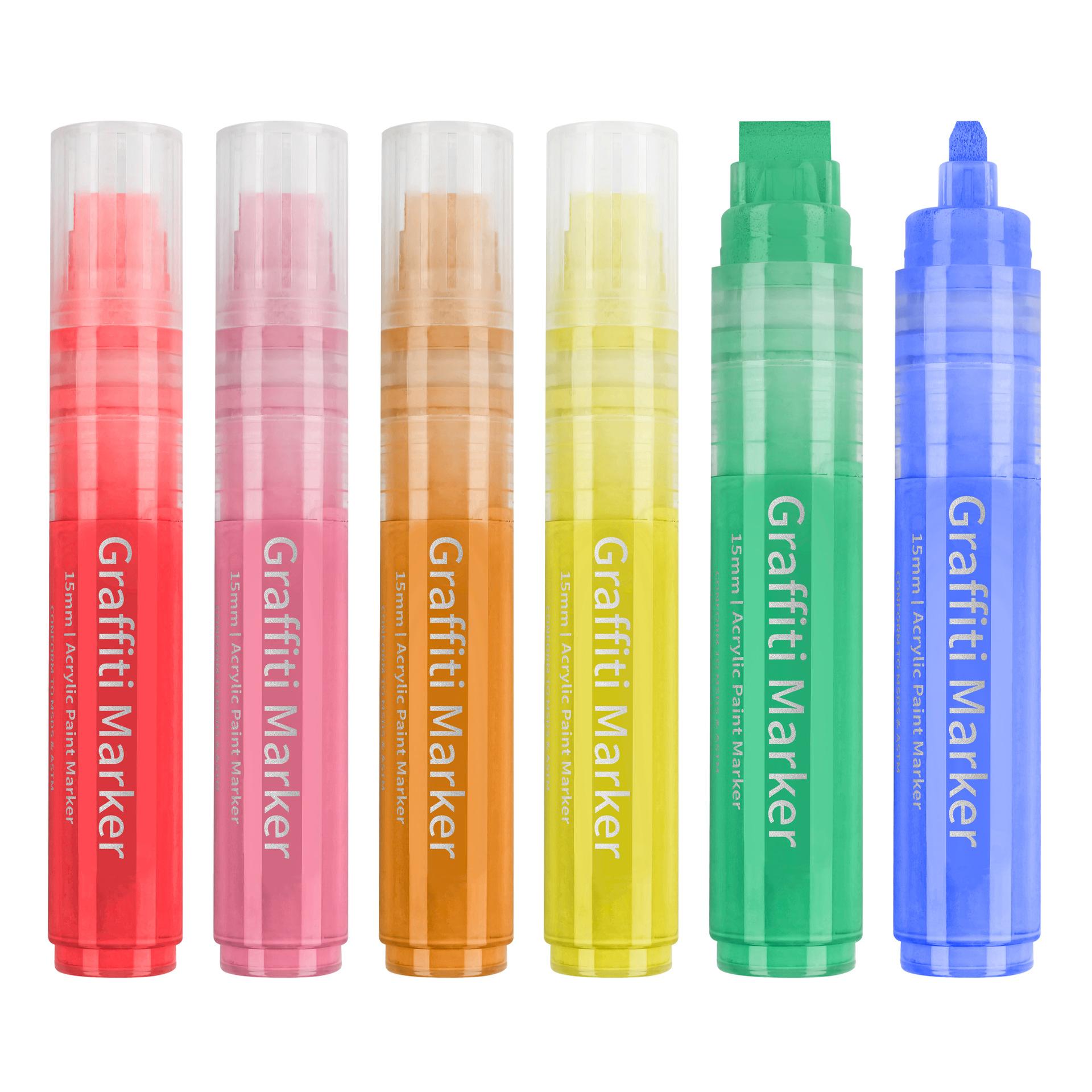 Rotulador acrílico grande de 15 mm, punta plana, a base de agua, color opaco, pintado a mano, para niños
