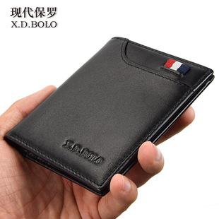 Ventas directas de fábrica nueva billetera de cuero genuino para hombre primera capa piel de vaca múltiples ranuras para tarjetas triple billetera para hombre transfronteriza