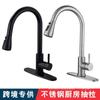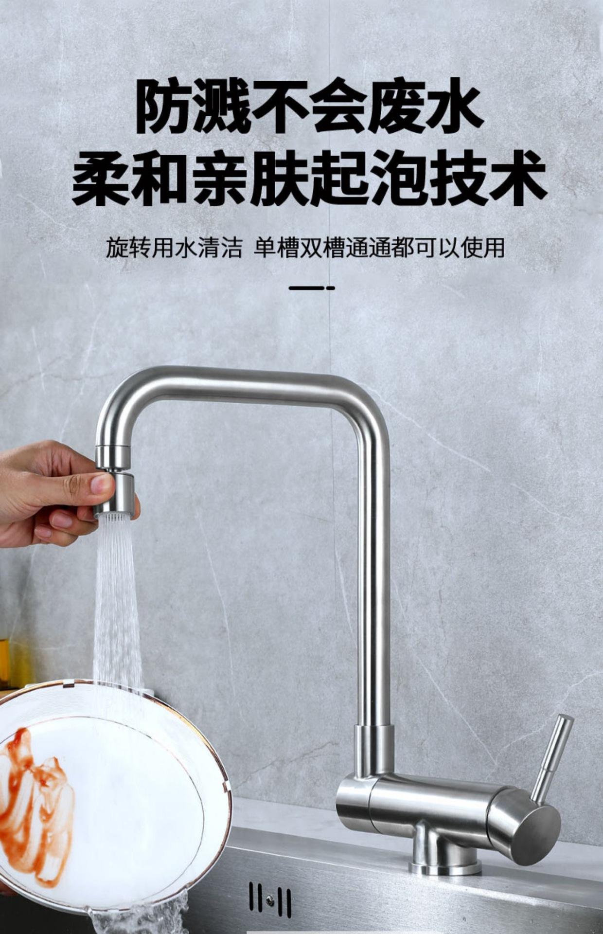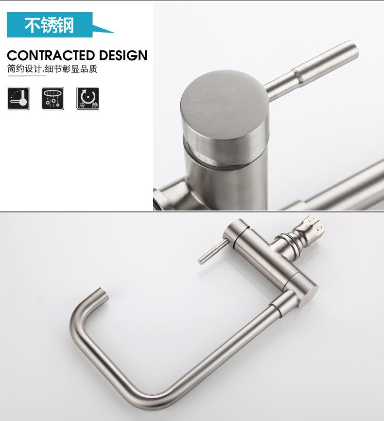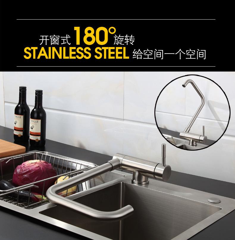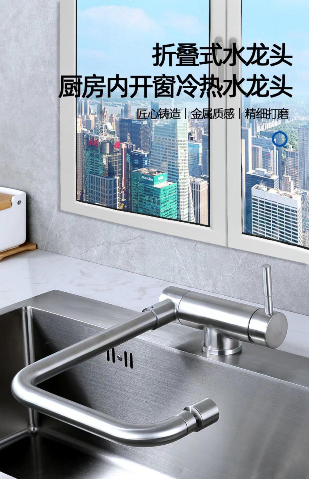 Grifo de cocina de acero inoxidable 304 con ventana interior, para platos fríos y calientes, plegable, giratorio, color negro, con borde cruzado.