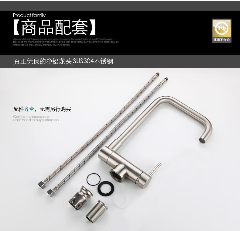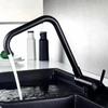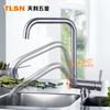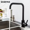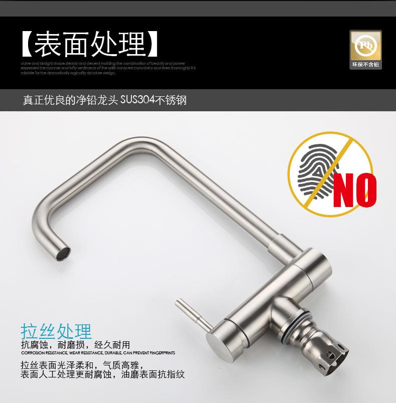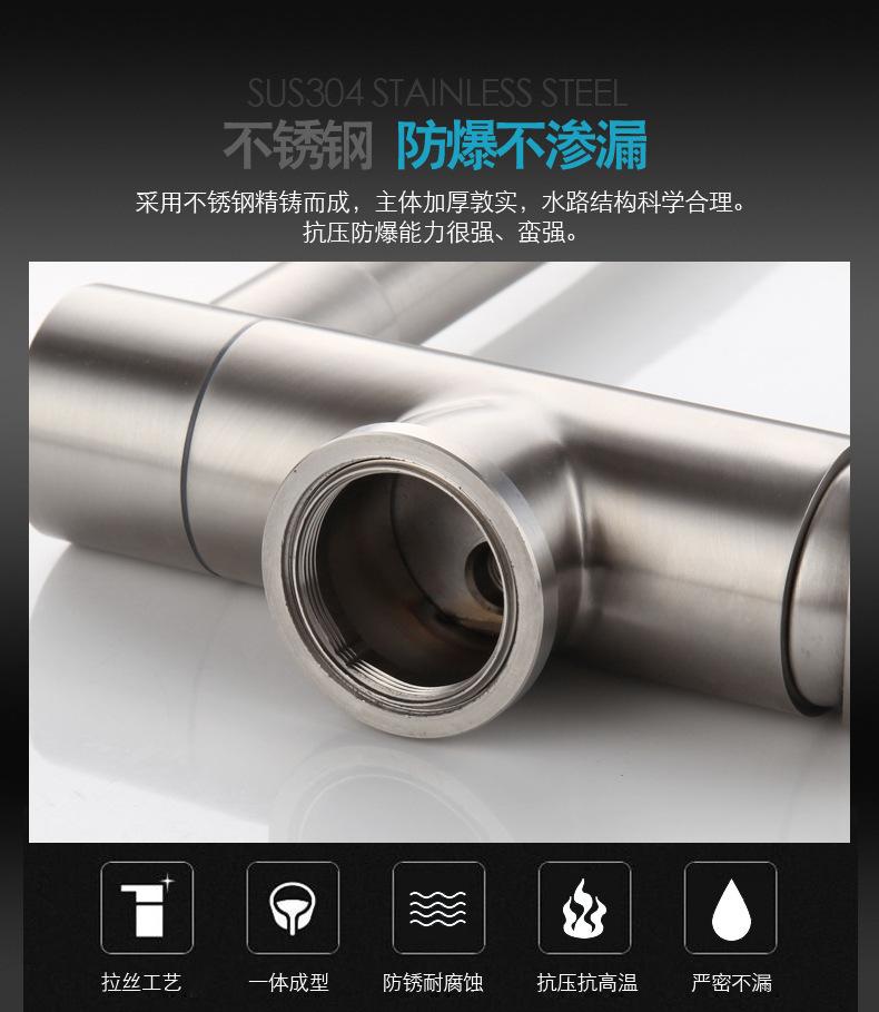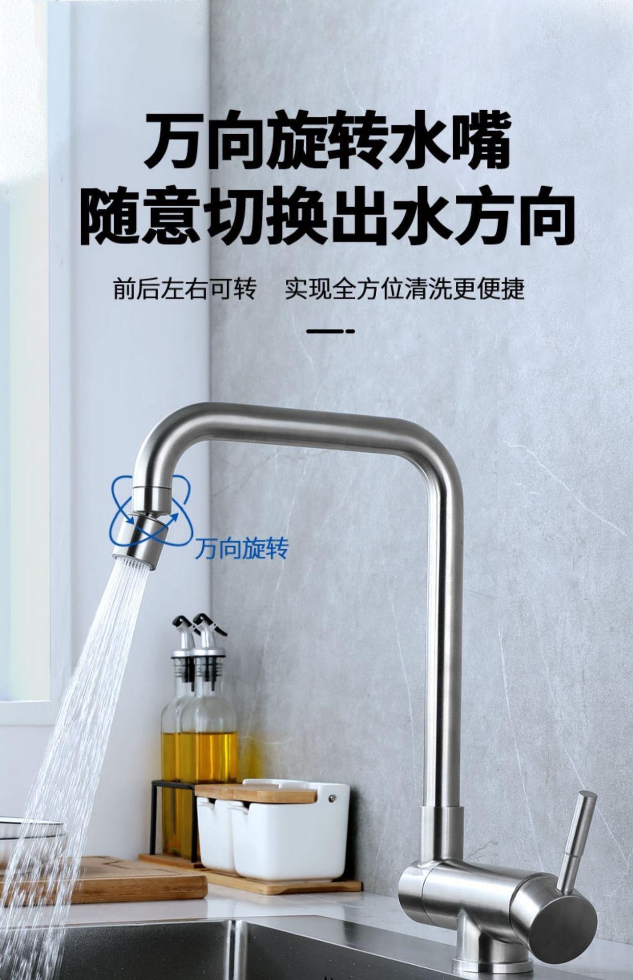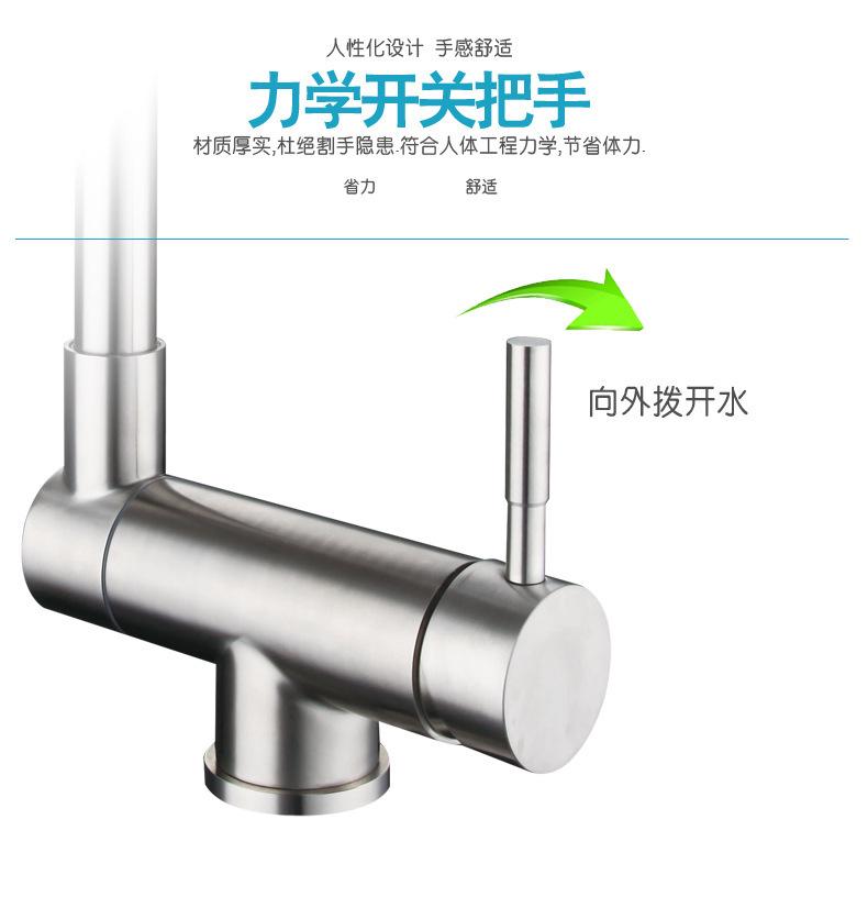 Grifo de cocina de acero inoxidable 304 con ventana interior, para platos fríos y calientes, plegable, giratorio, color negro, con borde cruzado.