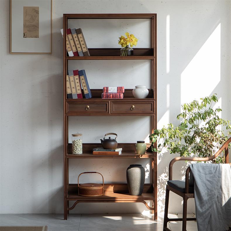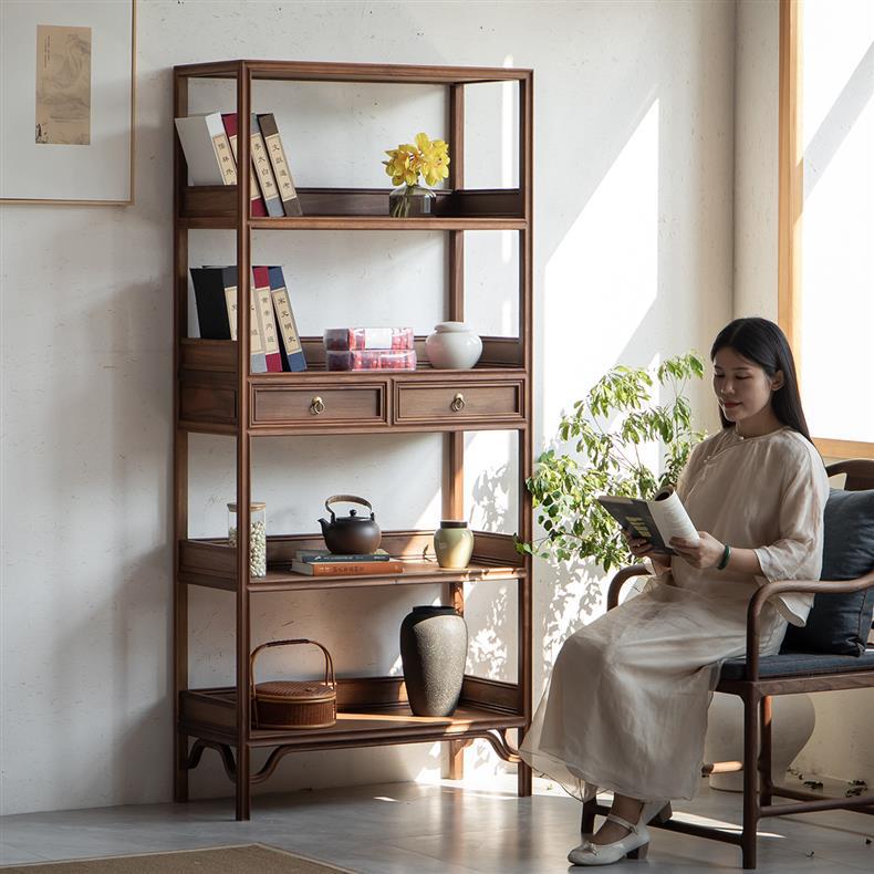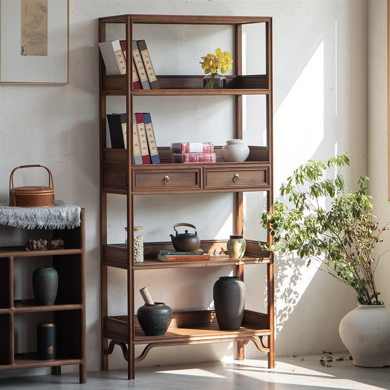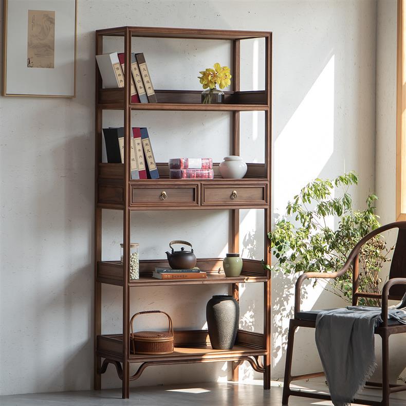 Nueva estantería de madera de nogal negro estilo chino, estantería de madera maciza, vitrina, estante para té zen, estante de almacenamiento, mueble de almacenamiento de olmo antiguo