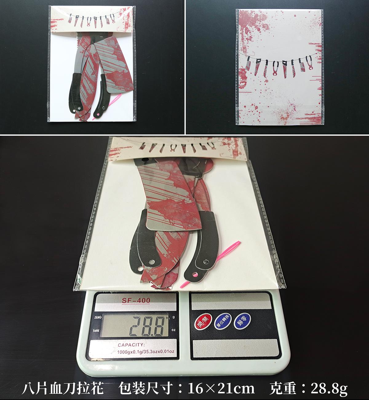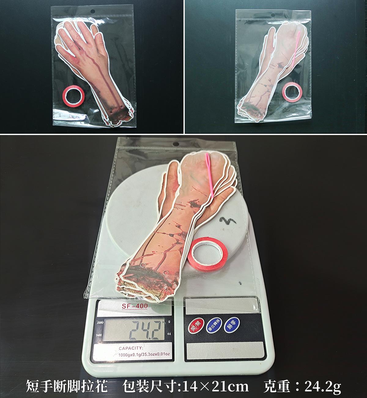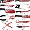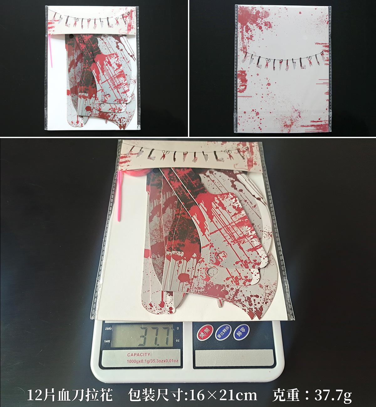 Tamaño del embalaje: 12 piezas de cuchillo de sangre de aproximadamente 40*15CM, 8 piezas de cuchillo de sangre de aproximadamente 40*15CM, mantel 19.5*38CM, 19.5*7.5CM, 8 piezas de manos y pies rotos 21*35CM,6 manos y pies rotos 45.5*20.5CM