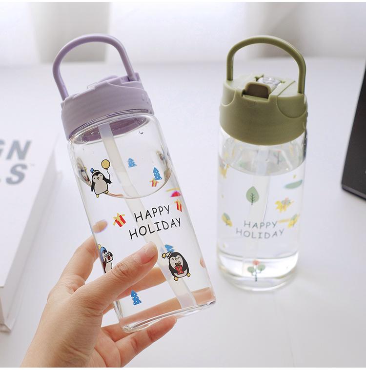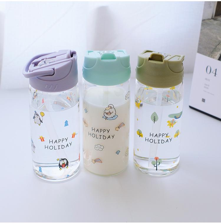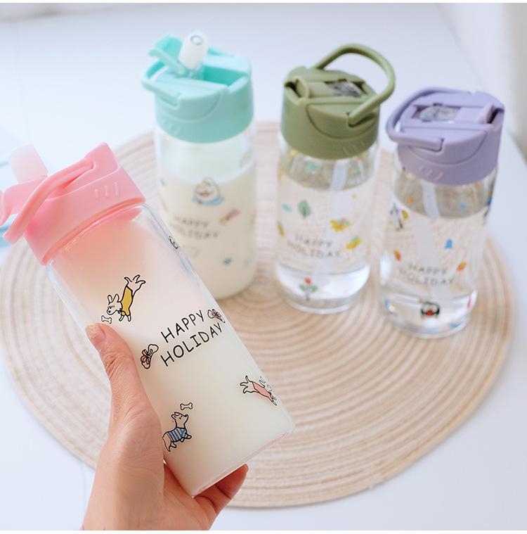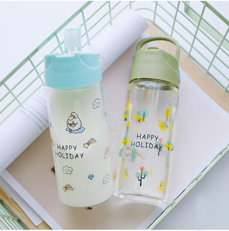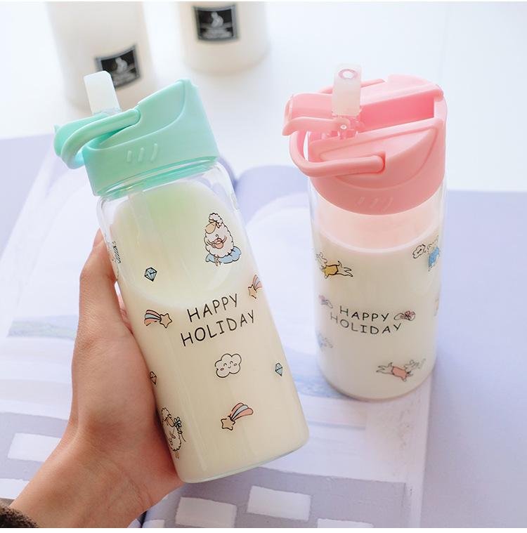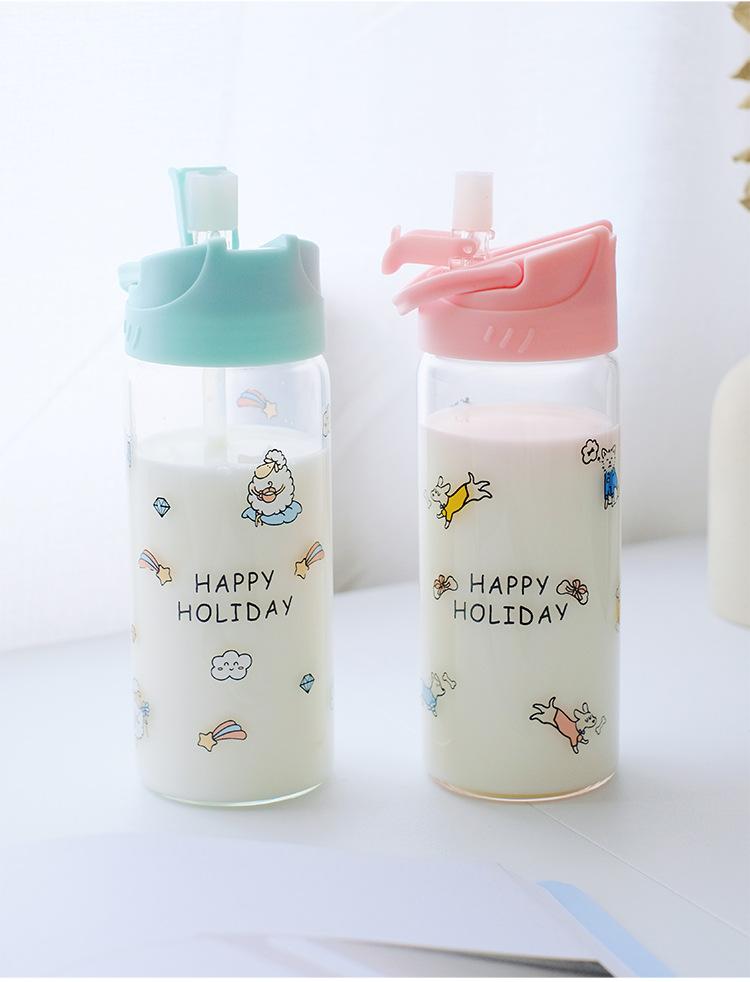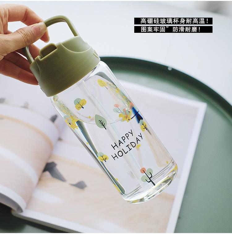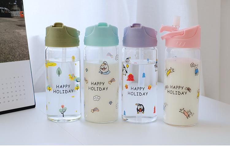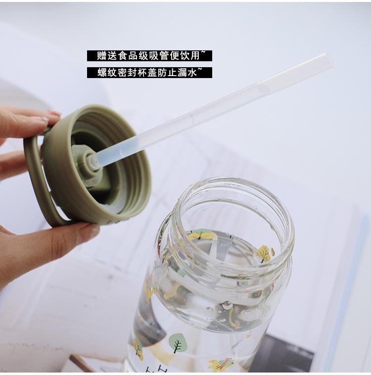 Vaso de Vidrio con Pajita Floral con Patrón de Dibujos Animados, Vaso Simple Resistente al Calor para Bebidas de Té con Leche, Vaso de Vidrio de Borosilicato Alto al por Mayor