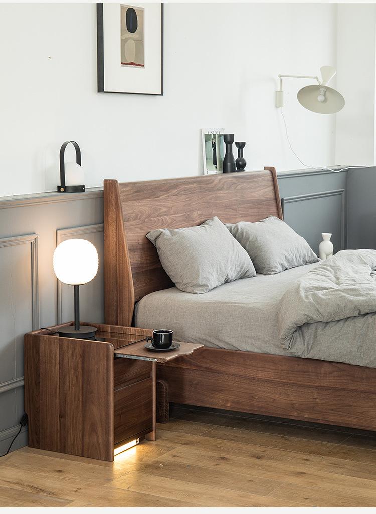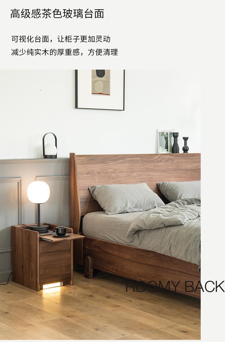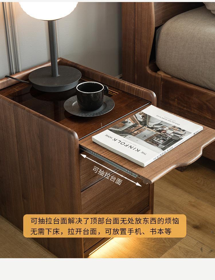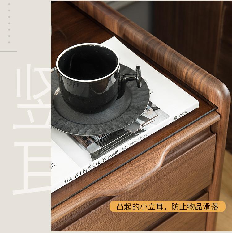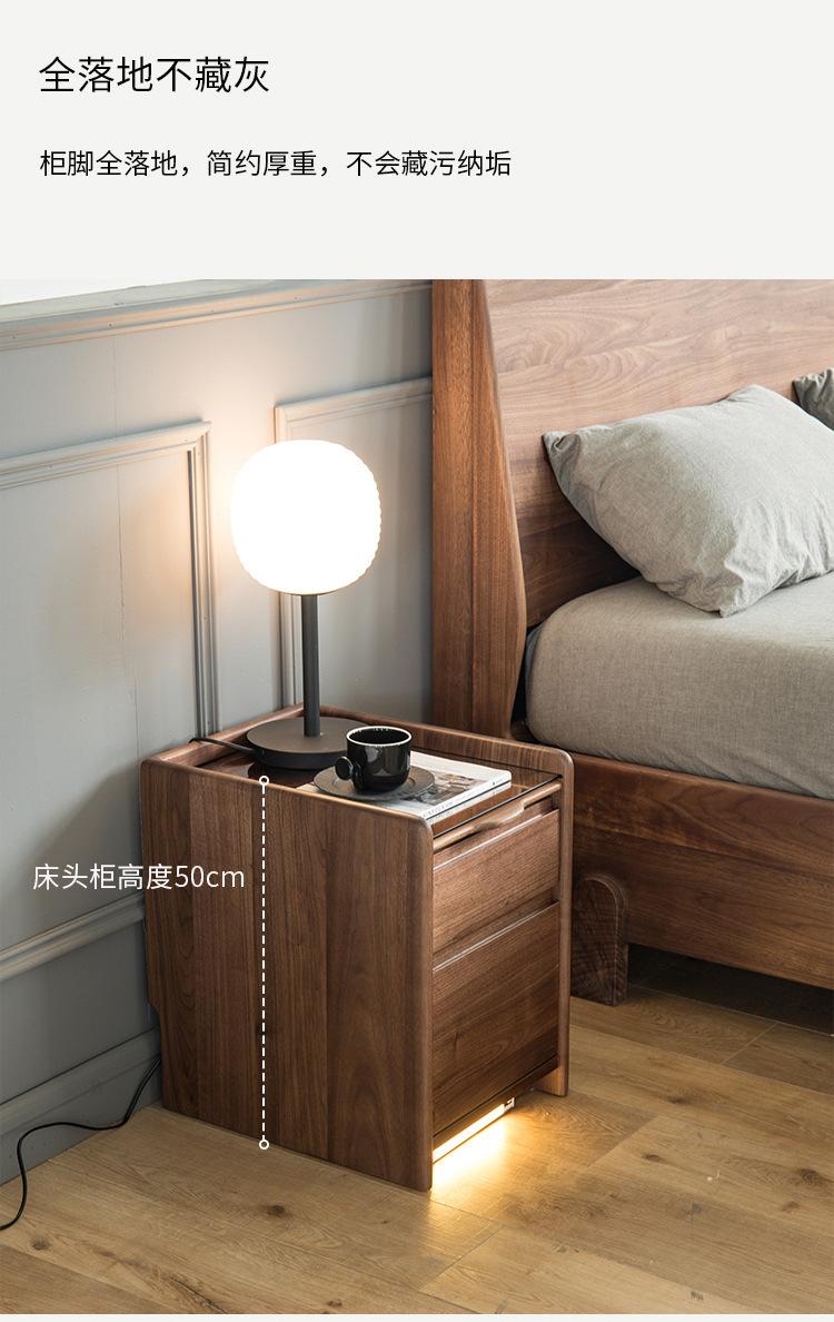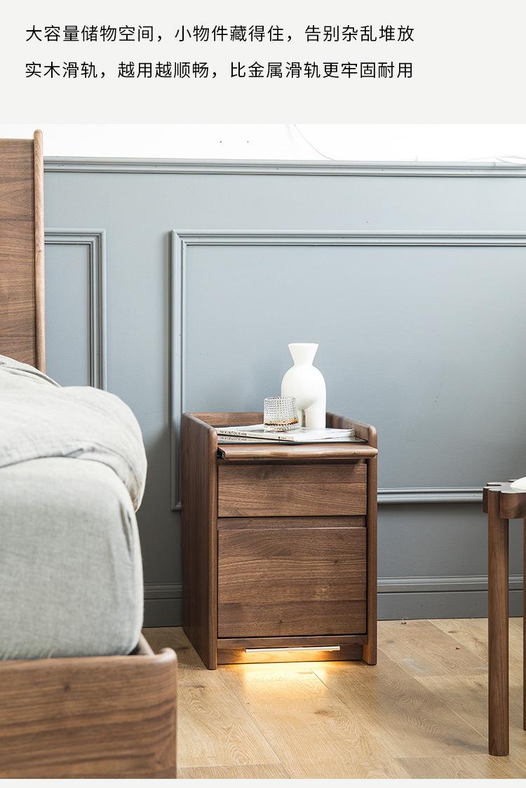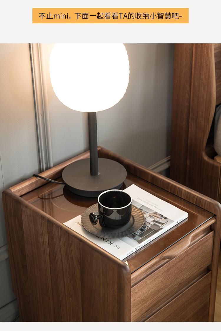 Mesita de noche nórdica de nogal negro, moderna y minimalista, de madera maciza de cerezo, para dormitorio, pequeño apartamento, armario de almacenamiento, mesita de noche