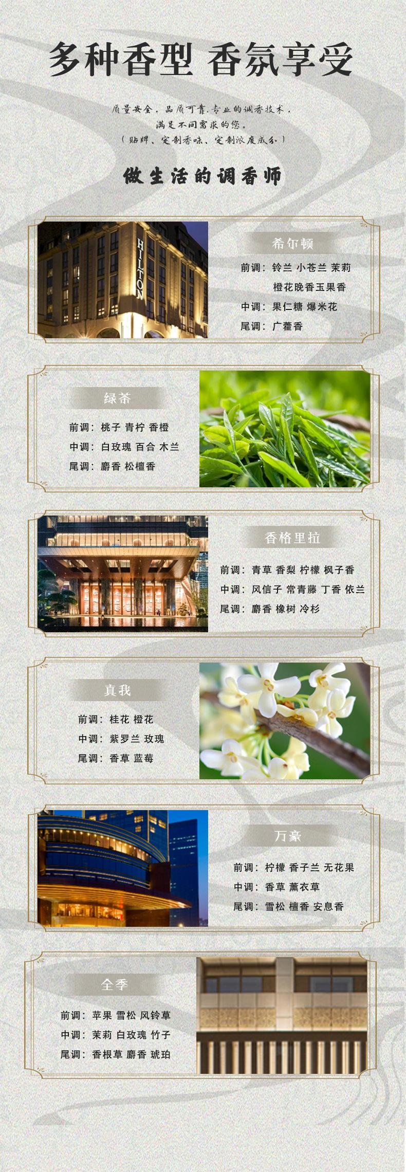 Westin white tea, Cologne, Norwegian forest, Miss coco, Gardenia, Hilton, Lavender, Wind chime valley, Encount...