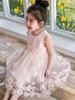 Vestido de princesa infantil de comercio exterior, vestido bordado tridimensional, vestido de tutú de malla sin mangas, vestido de princesa para niñas de flores de boda
