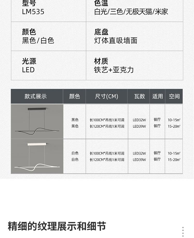 Black large size 129cm/39w, White large size 129cm/39w, Black small size 100cm/32w, White small size 100cm/32w