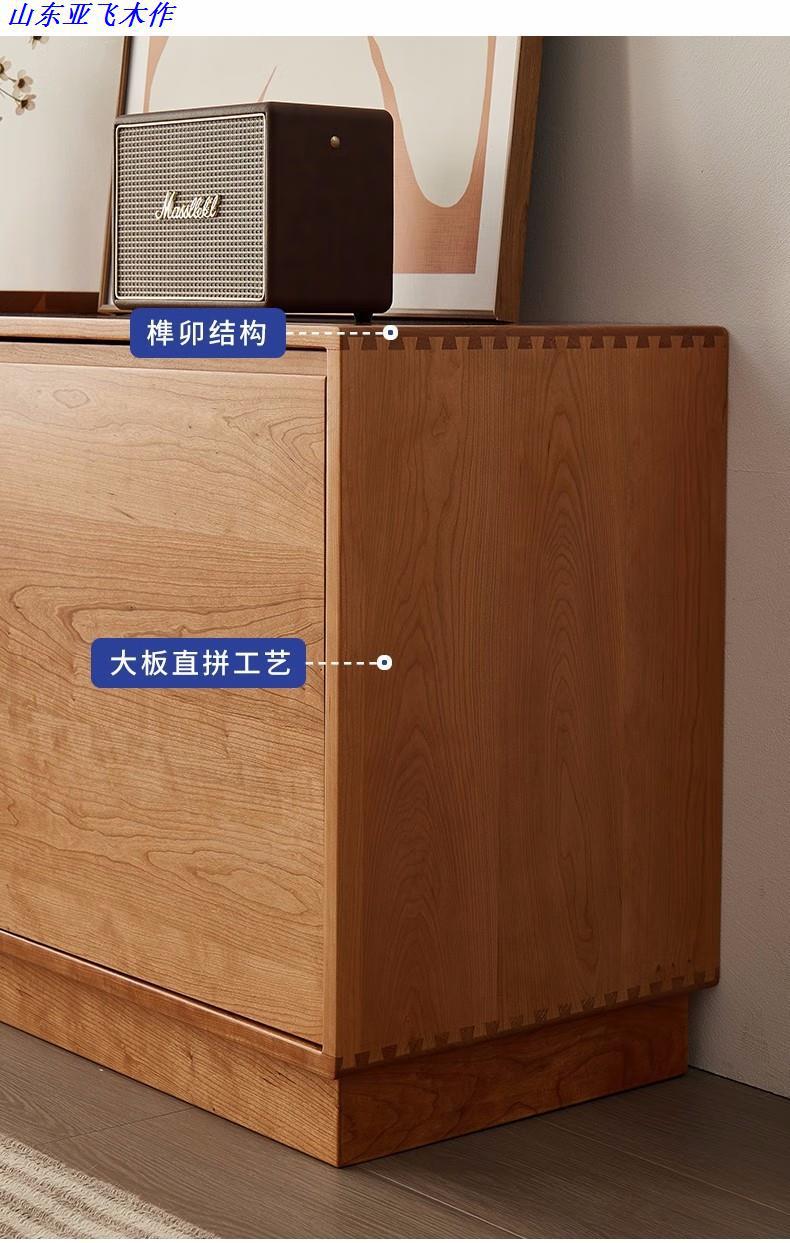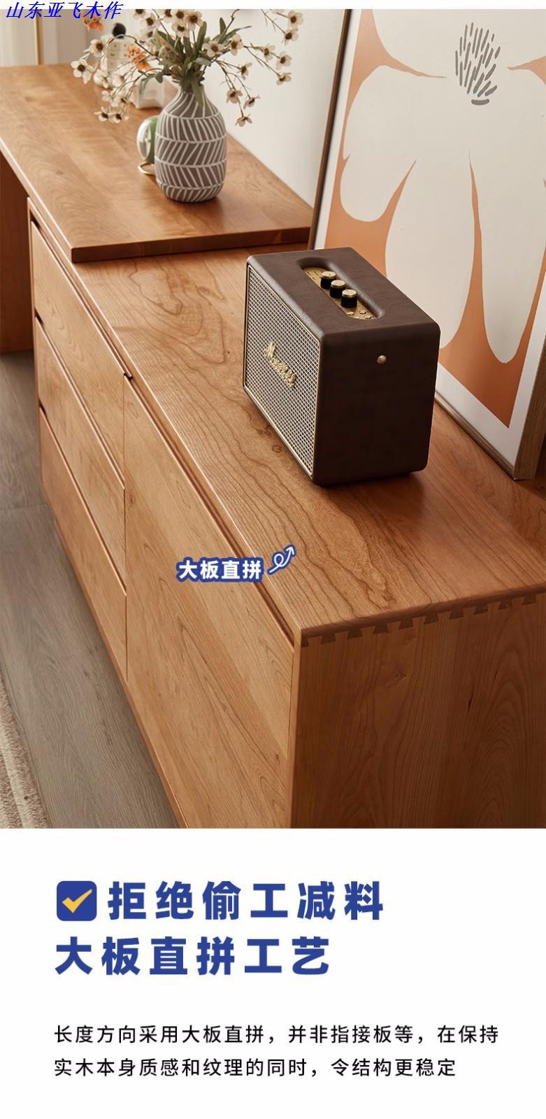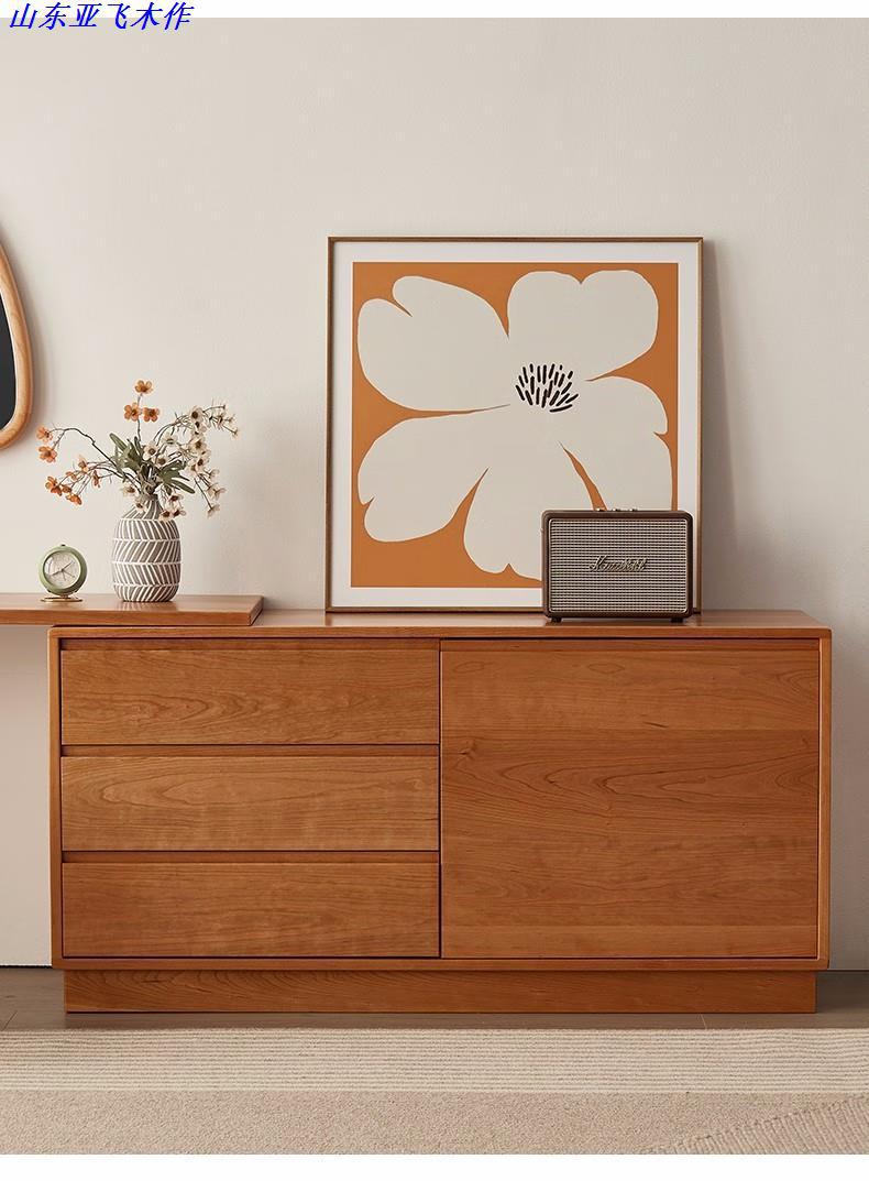 Mueble de TV de lujo nórdico ligero de nogal negro con combinación de mesa de centro estilo wabi-sabi de madera de cerezo, armario de almacenamiento moderno y sencillo