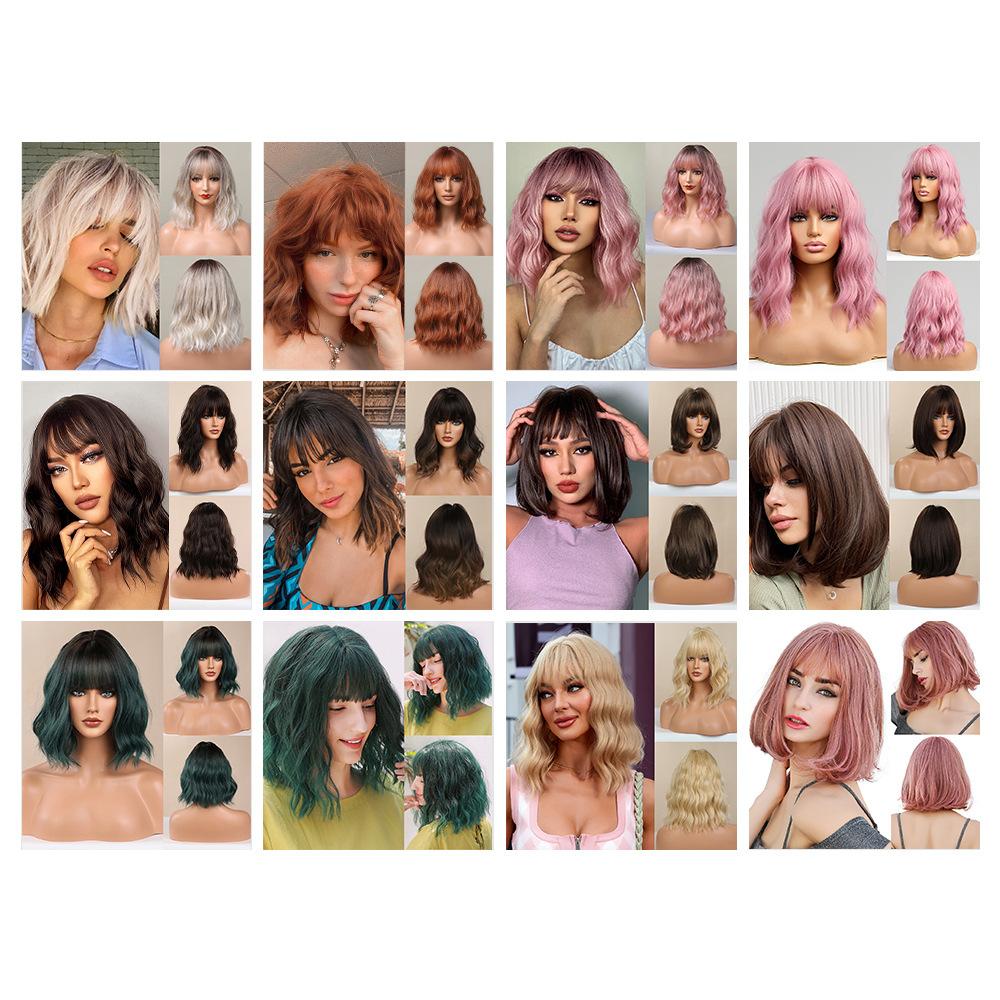 Moda Nuevo Cabello Corto Lacio para Mujer Ciber Popular Reductor de Edad Multicolor Cabeza Ondulada Cobertura Completa de Cabeza Peluca Natural Estilo de Cabello Completo
