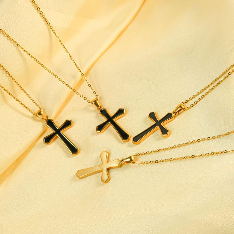 Collar de cruz de acero de titanio hip hop clásico europeo y americano epoxi negro chapado en oro de 18 quilates acero inoxidable Joyería de moda transfronteriza