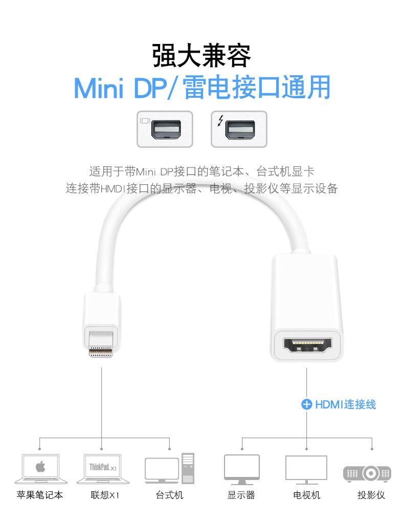 10. Diseñado estrictamente de acuerdo con el estándar Mini DisplayPort, en línea con las especificaciones Mini DisplayPort de la computadora Apple, la transmisión de señal es estable y confiable;