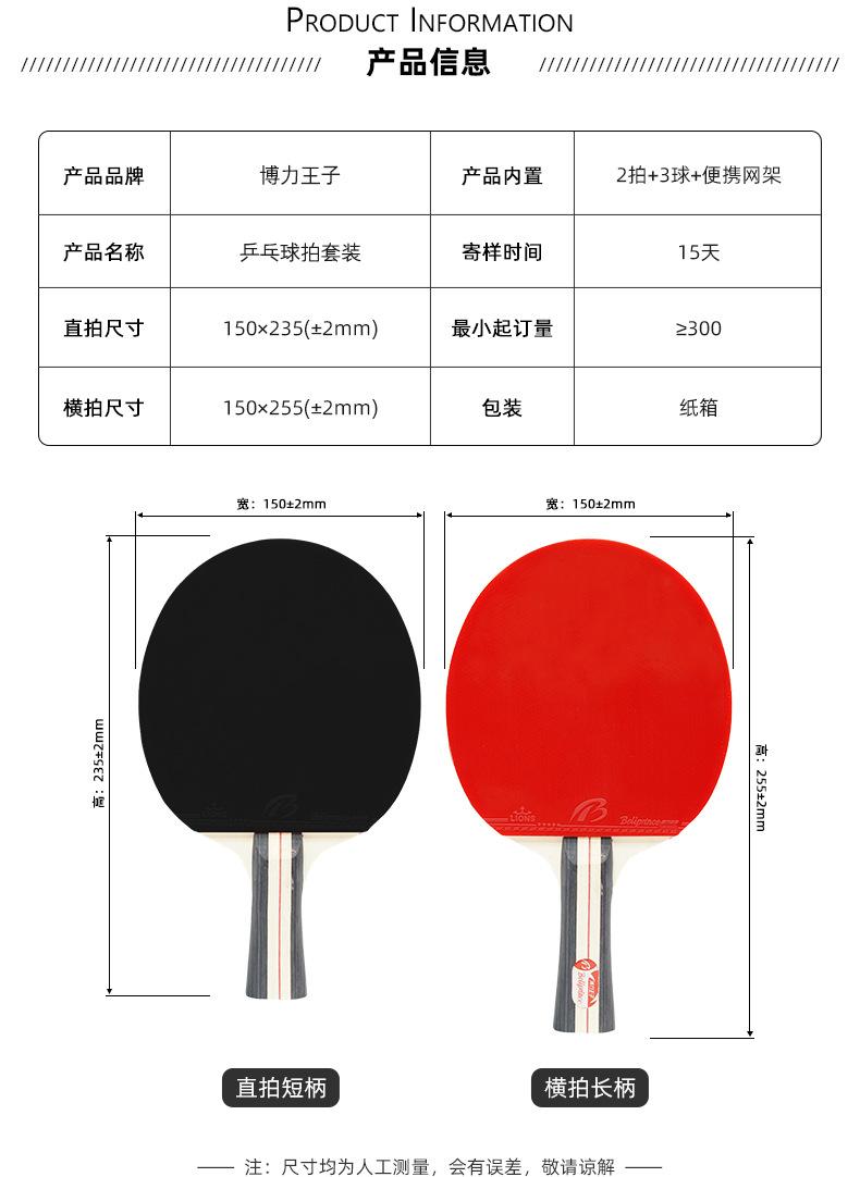 Raqueta de tenis de mesa Boli Prince de dos golpes y tres bolas con marco de red portátil, venta directa de fábrica, logotipo personalizado OEM