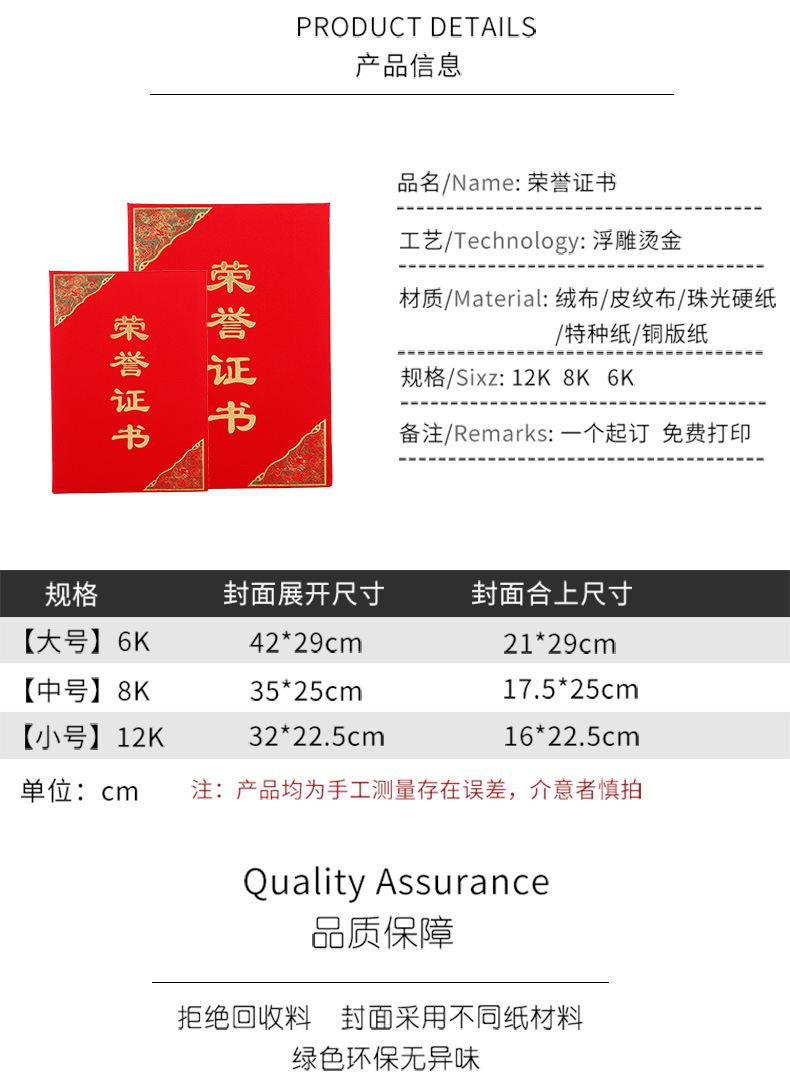Certificado de honor, certificado A4, cubierta de concha, carta de nombramiento de alta gama, premio de empresa, recuerdo con logotipo.