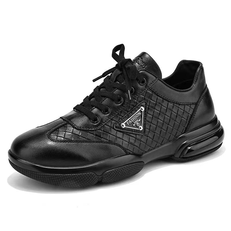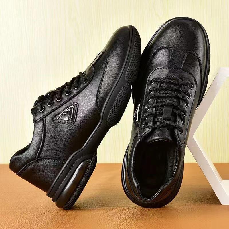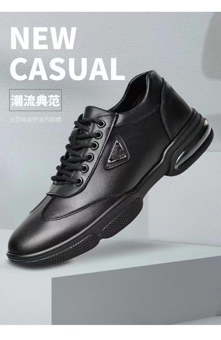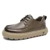 Zapatos casuales de cuero para hombre, nueva versión coreana 2025, zapatos de cuero de negocios negros, zapatos redondos de suela suave, transpirables con cordones, zapatos para hombre al por mayor