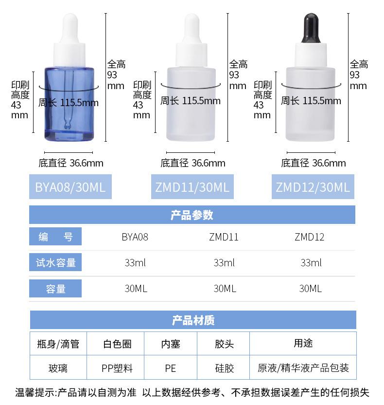Dropper bottle*30ml transparent blue+white ring+white plastic head*glass