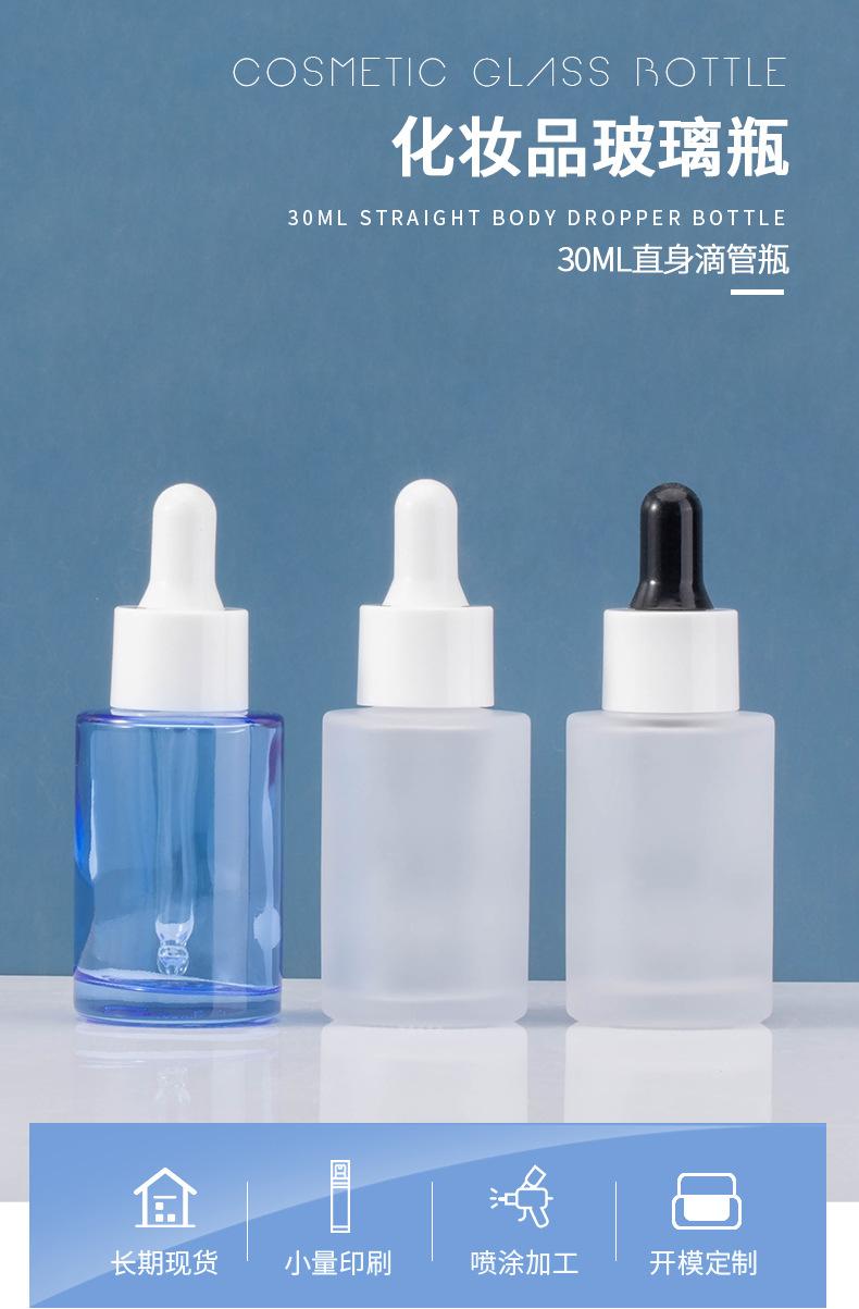 Xumin Packaging - Frasco gotero de vidrio de 30 ml para cosméticos, exfoliante corporal recto, botella de esencia líquida, botellas de viaje