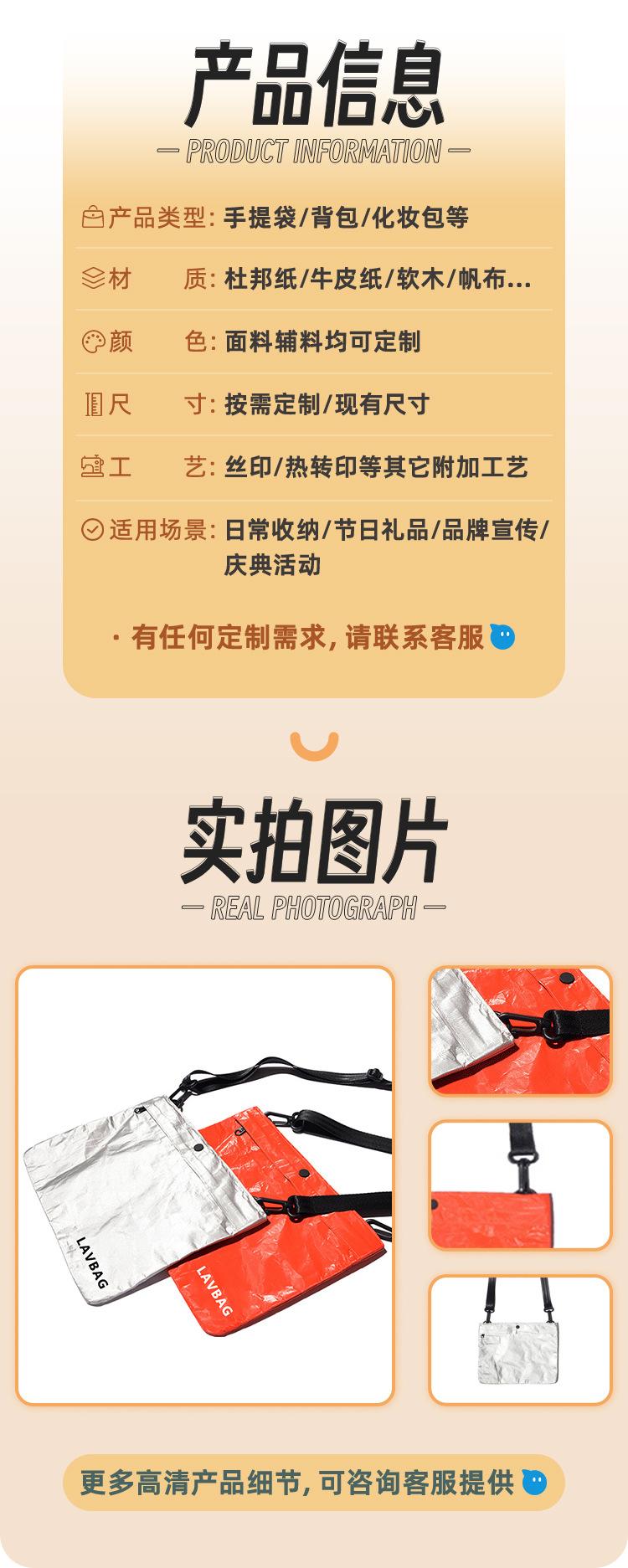 Bolso bandolera ligero y moderno de papel kraft Dupont, personalizado al por mayor.