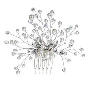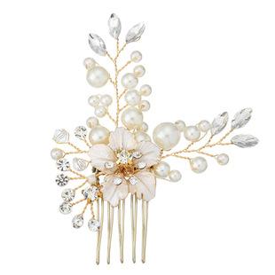 | Exquisito peine para el cabello de novia hecho a mano, estilo europeo y americano, simple, de aleación con diamantes de imitación y perlas, accesorios para vestidos de novia, suministro transfronterizo |