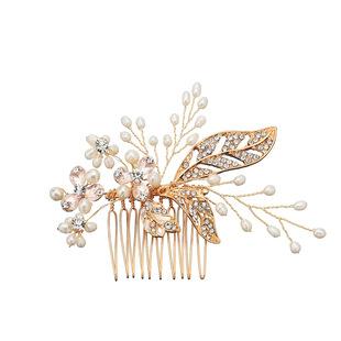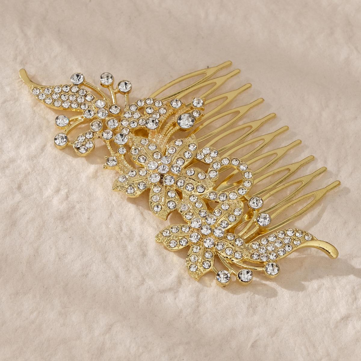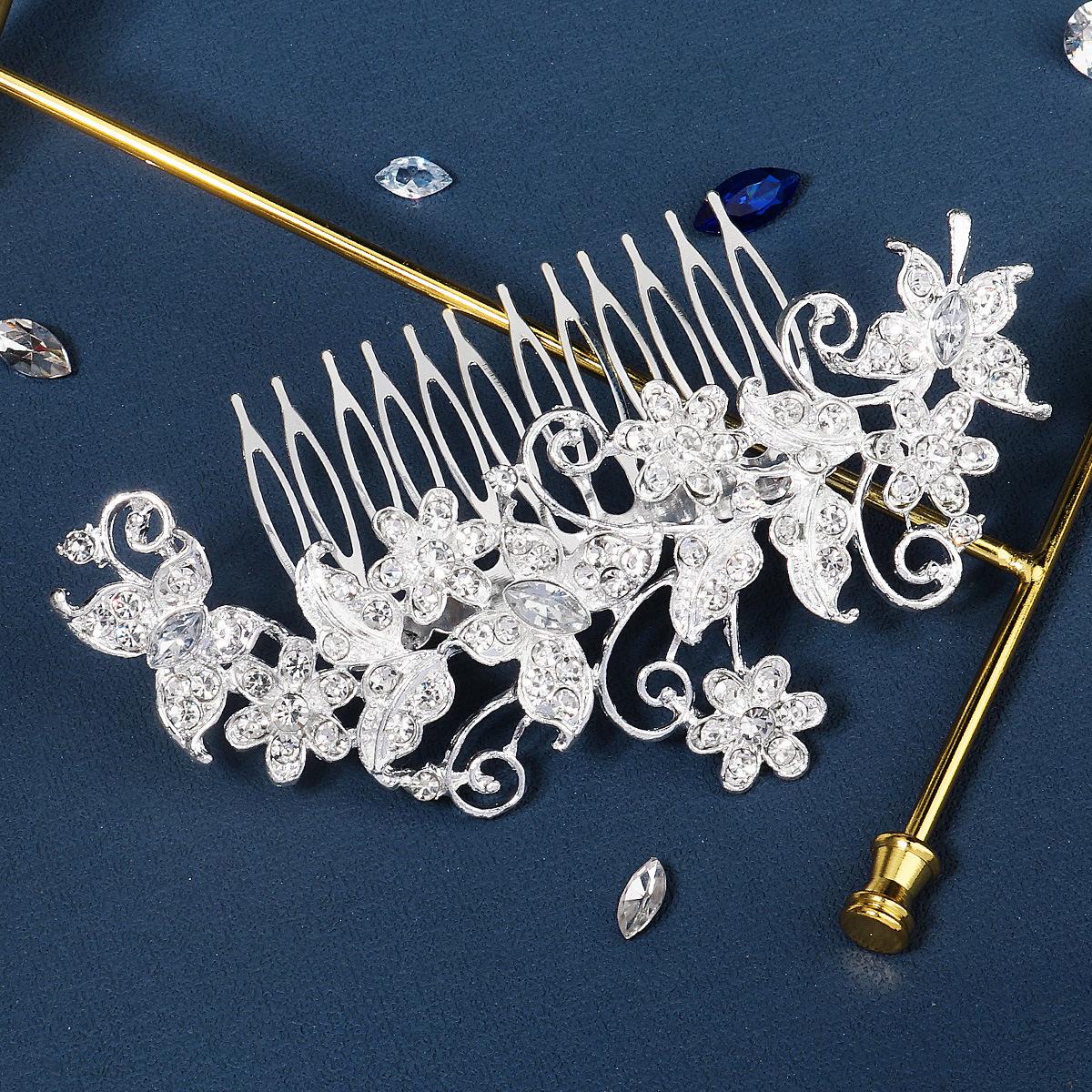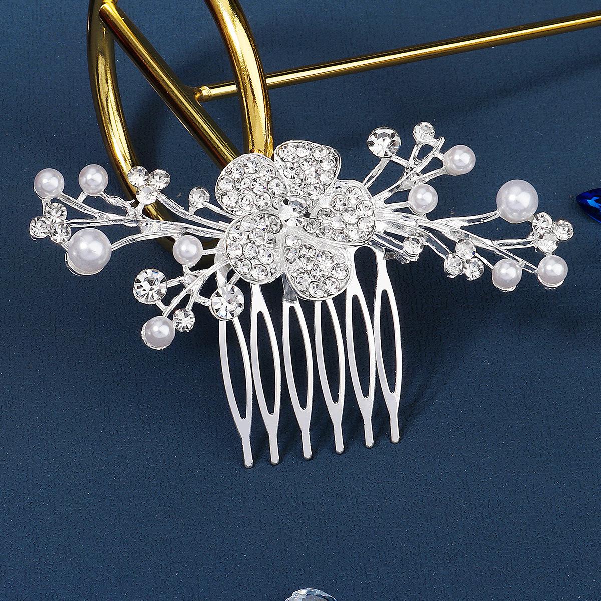 | Peineta de novia europea y americana con perlas, peine de alta gama con diamantes de imitación insertados a mano, tiara de flores de cristal, vestido de novia |