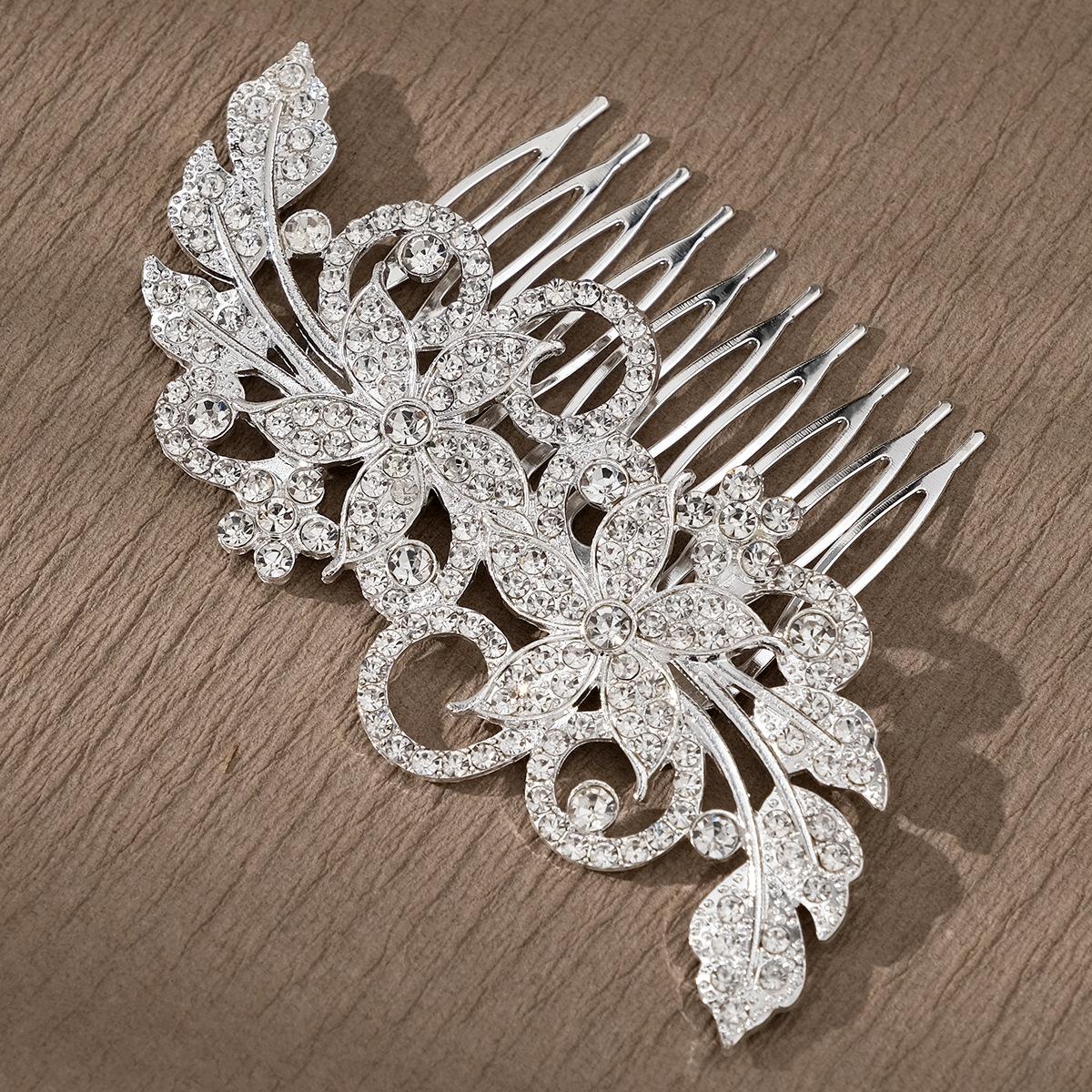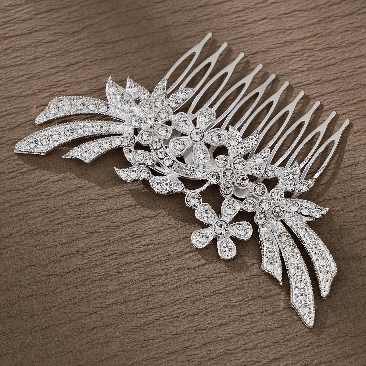 | Nuevos adornos para el cabello con moño de estilo europeo y americano, peine con forma de flor de cristal, peine creativo con cadena suave para novia. |