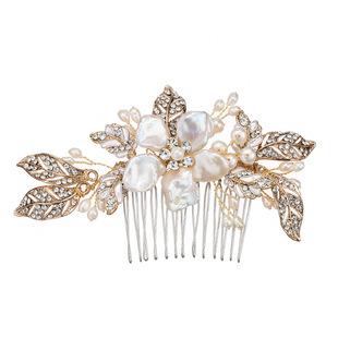 | Peineta para el cabello hecha a mano con flor de perla, hoja de aleación, fabricante de tocados para novia, gran oferta |