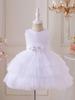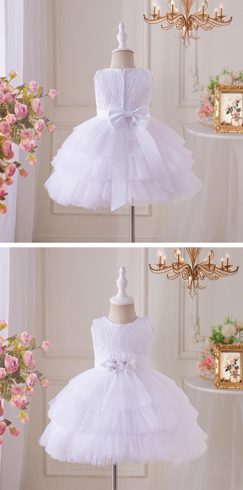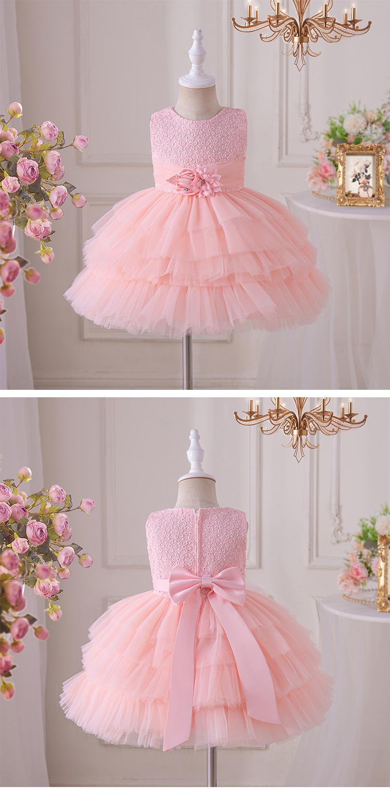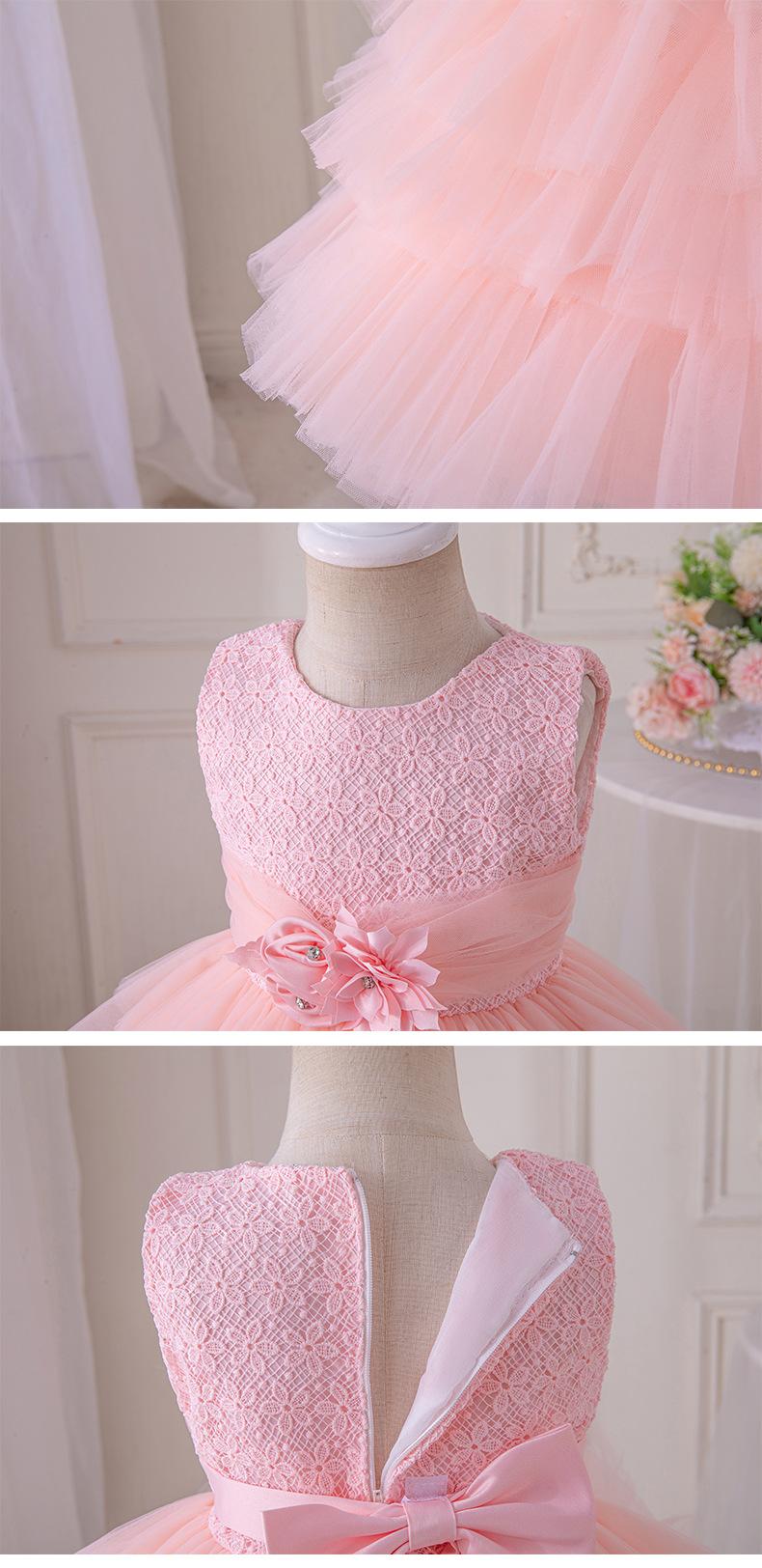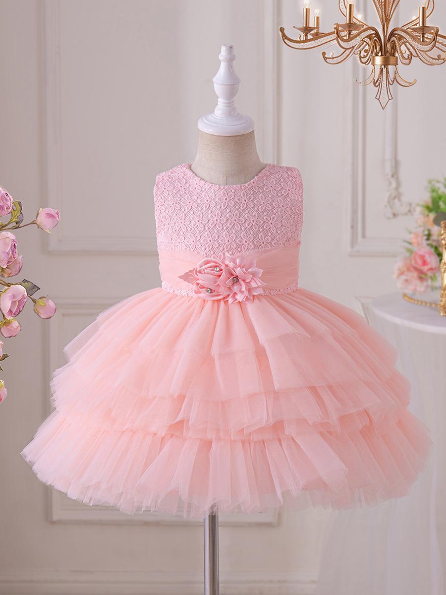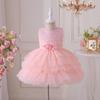 100-110-120-130-140 Nuevo Vestido de Princesa para Niñas con Decoración de Flores en la Cintura, Falda de Malla Abullonada, Vestido de Cena para Vacaciones, Vestido para Niñas