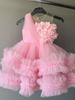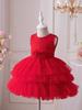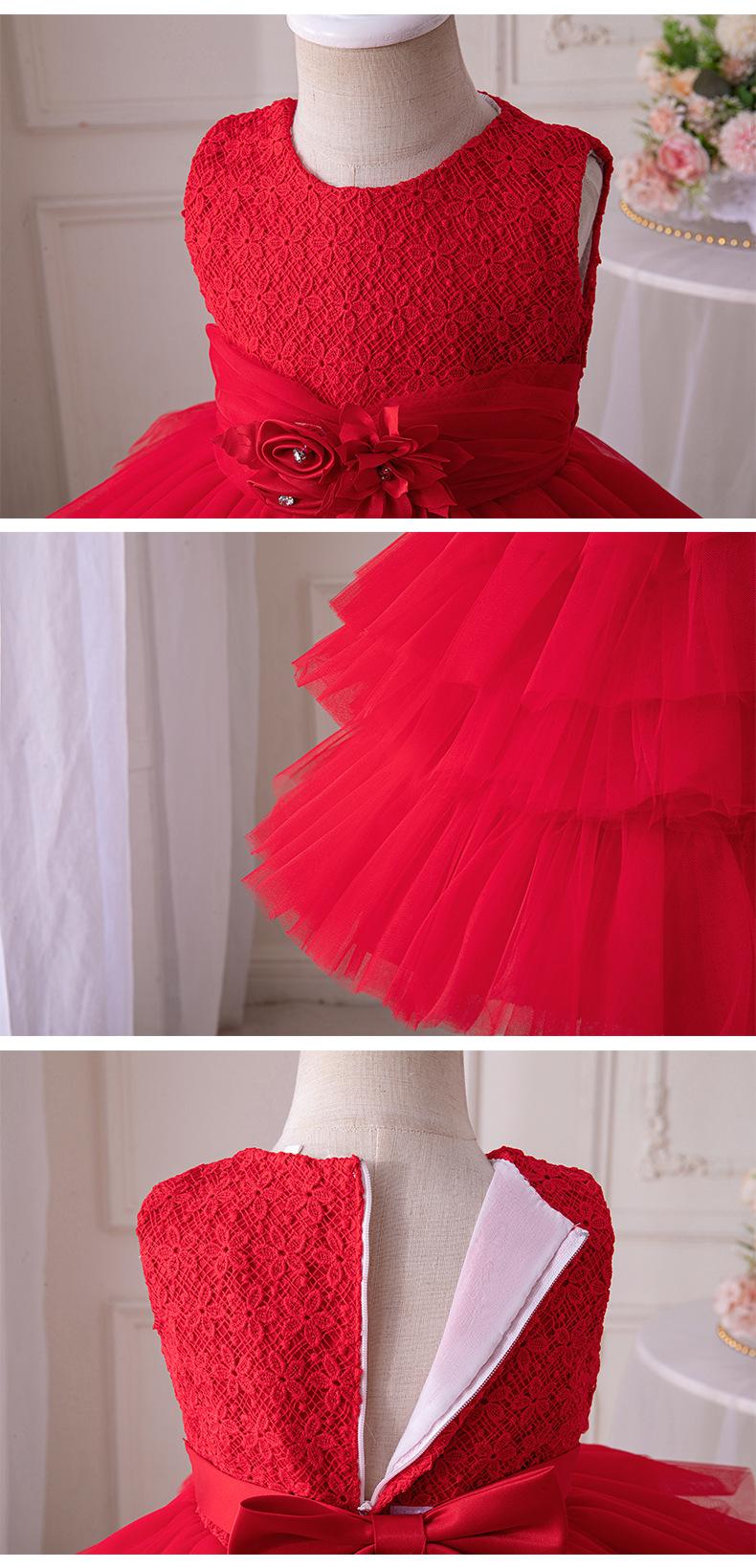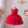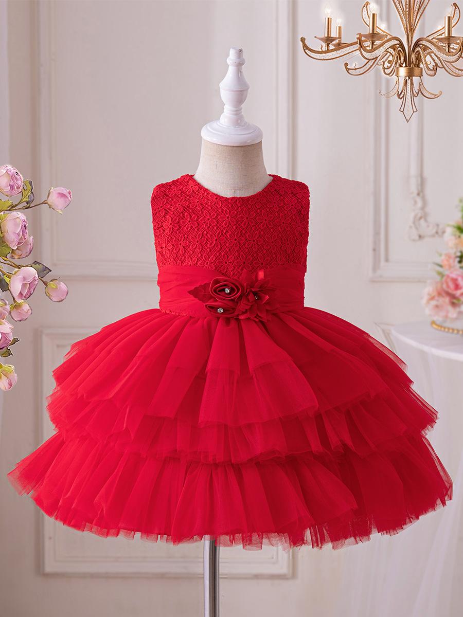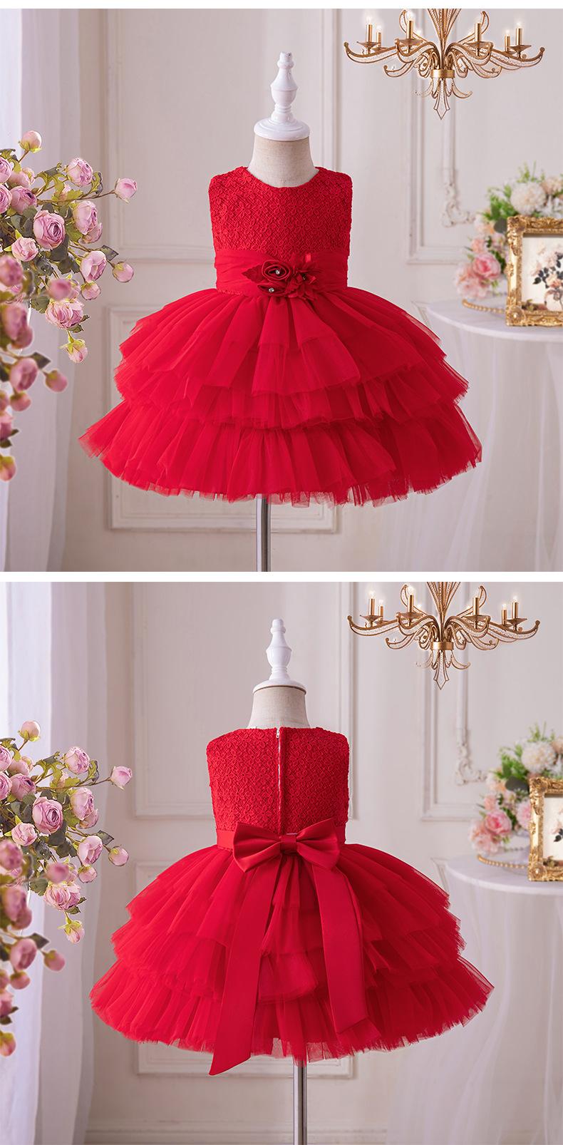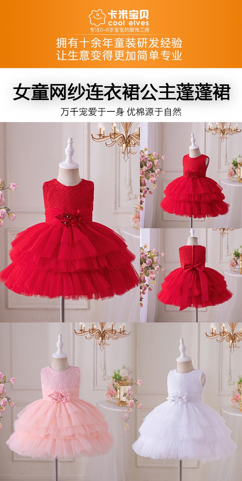Nuevo vestido de princesa para niña con decoración de cintura de flores, vestido de malla hinchada para niña, vestido de cena navideña, vestido de niña