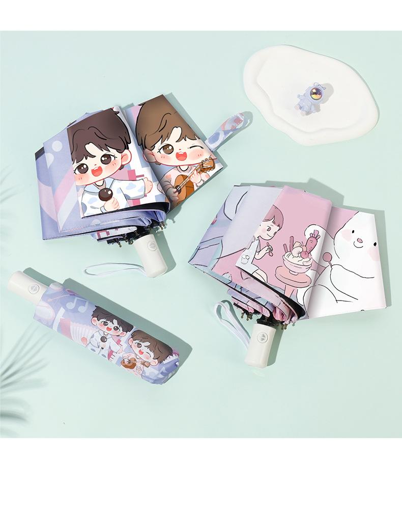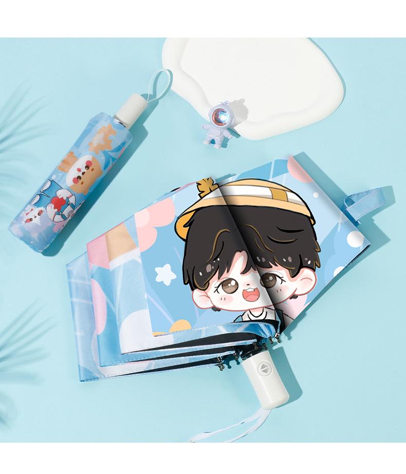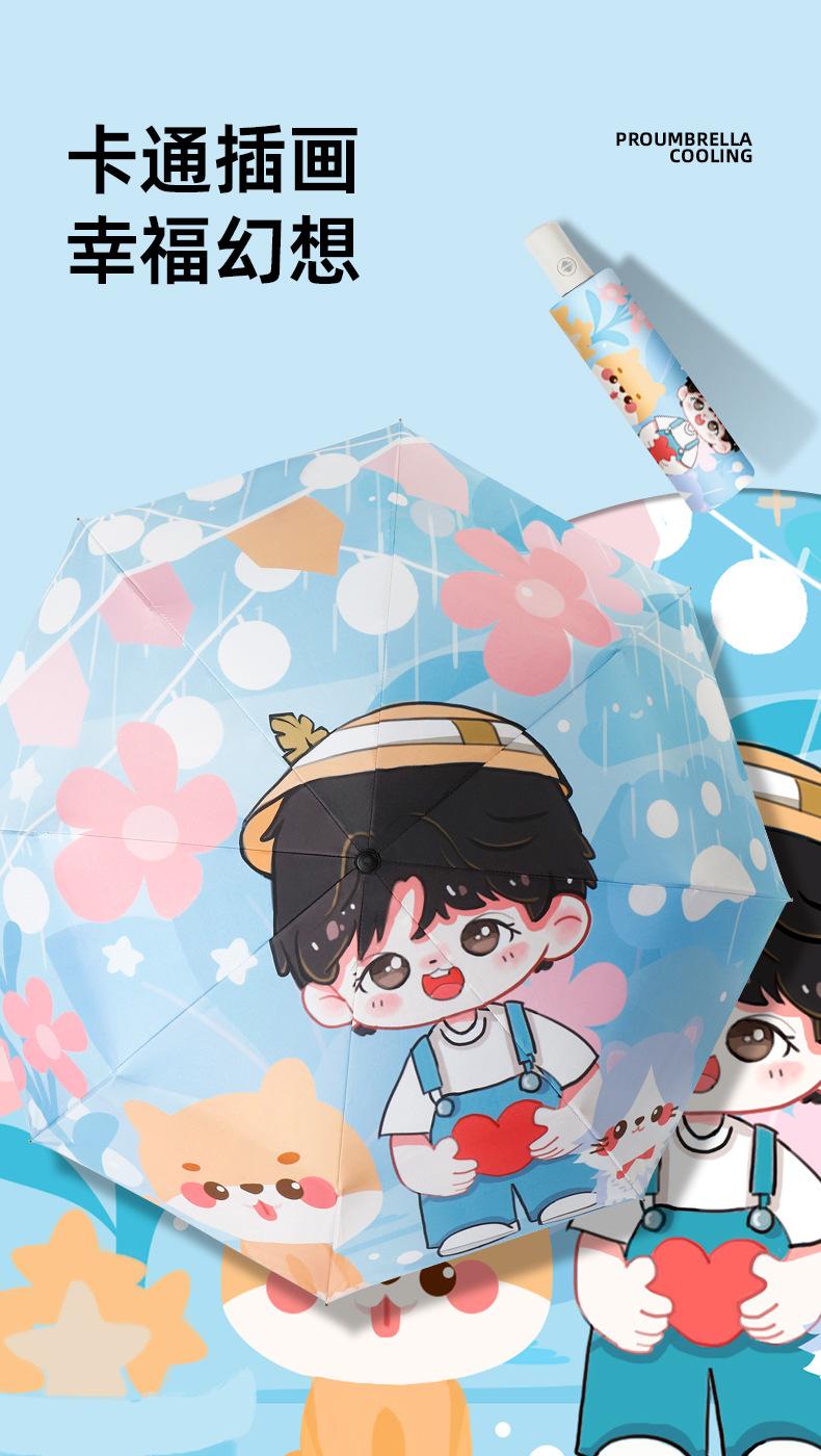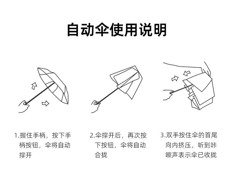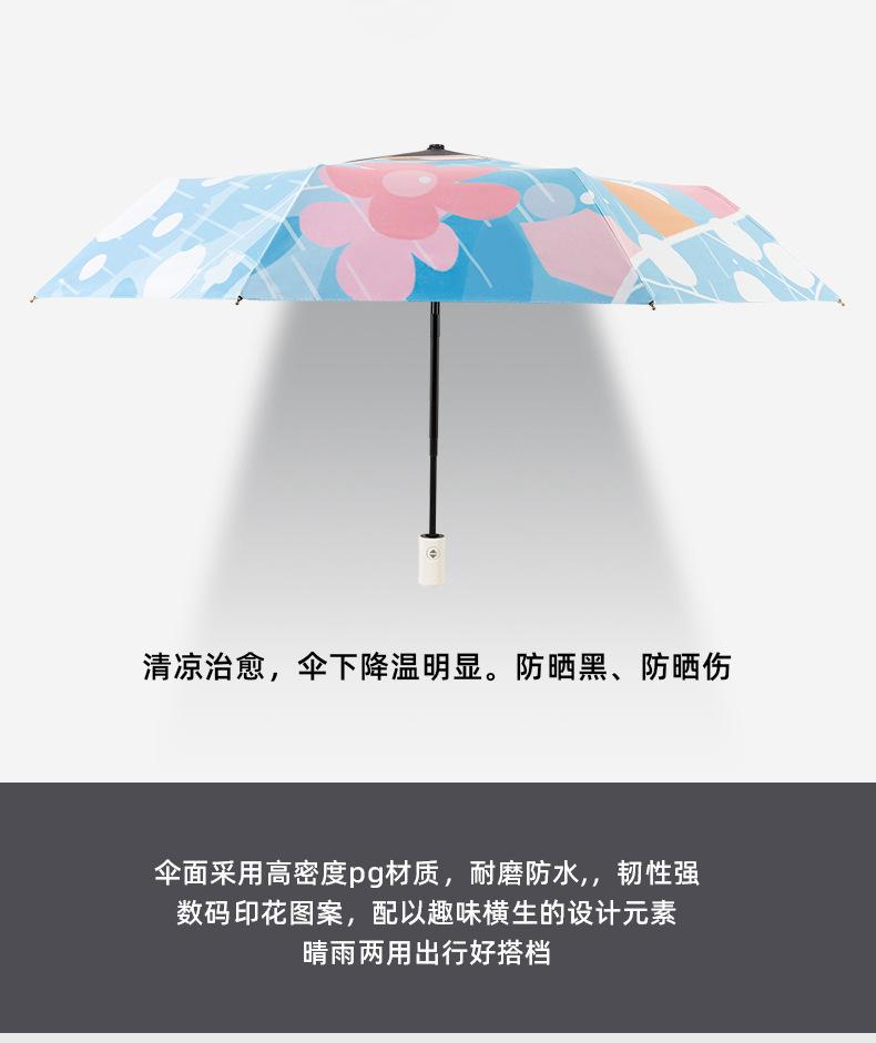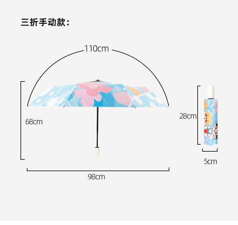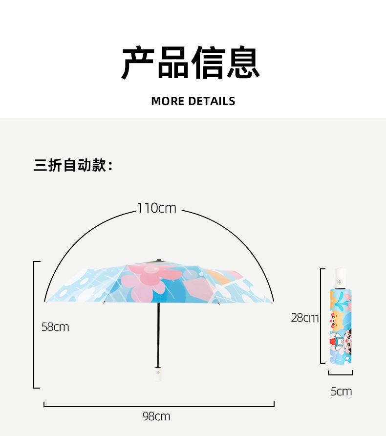 Paraguas al por mayor, paraguas automático de tres pliegues, paraguas de goma negra con protección solar, paraguas anti-ultravioleta de alto valor, paraguas publicitario.