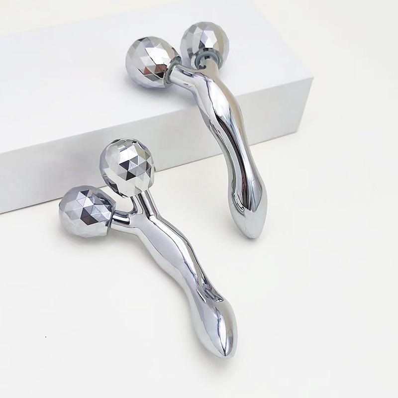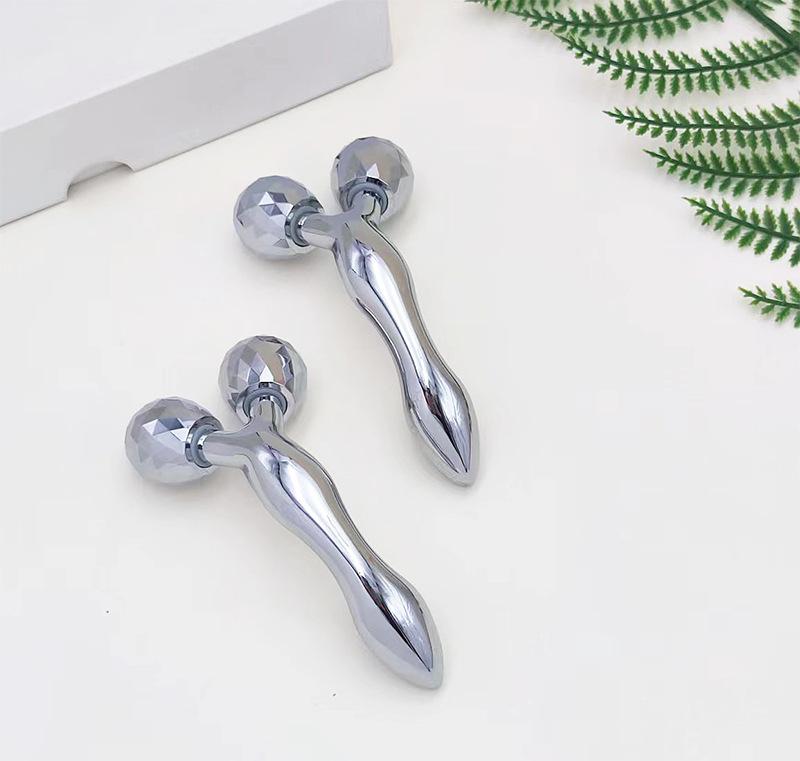 Masajeador facial al por mayor, instrumento de belleza facial compacto Lifting V, palo de masaje portátil de metal, instrumento de masaje con rodillo 3D.