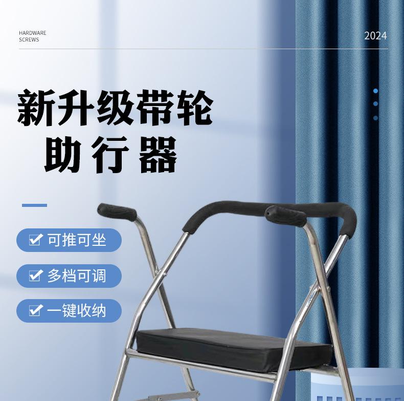 Andador con ruedas para interiores, pequeño andador con ruedas, plegable, con empuje manual, para personas mayores.