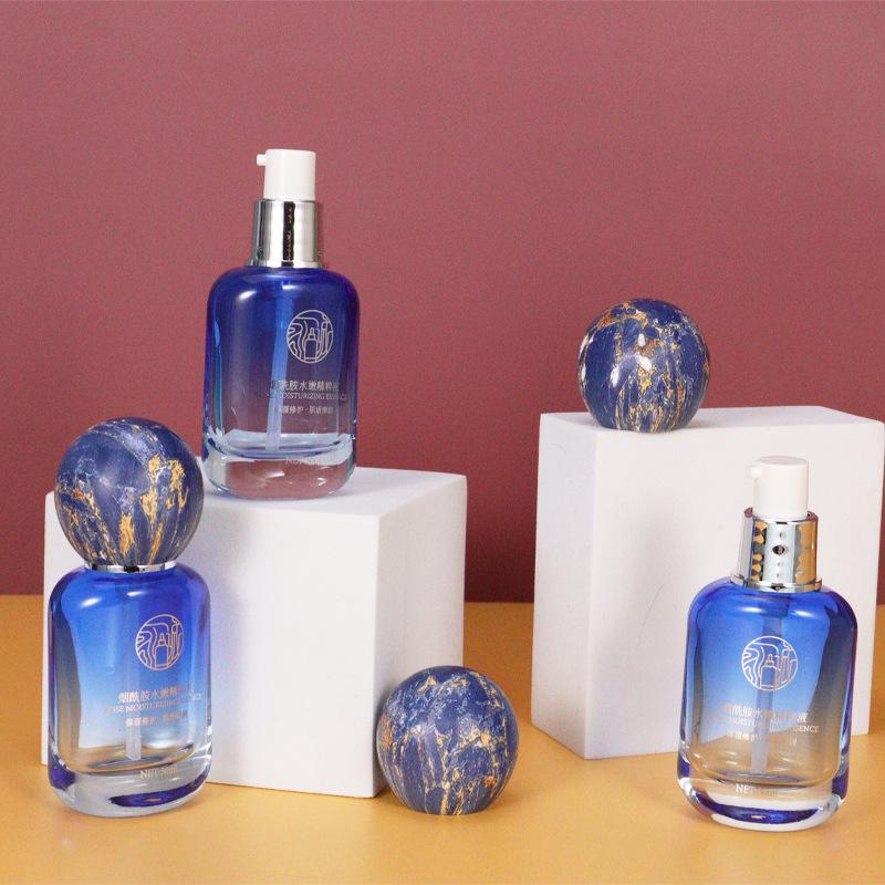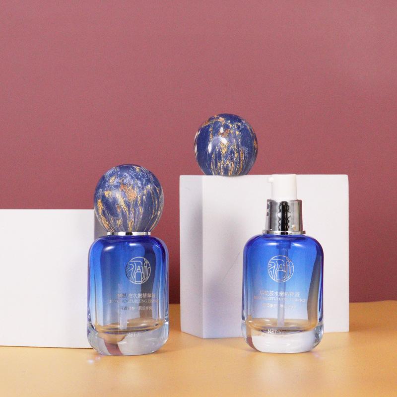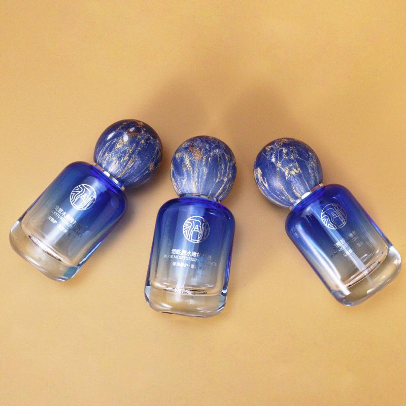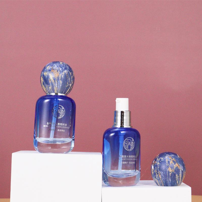 Botella cuentagotas de vidrio de 30 ml, venta al por mayor, embalaje cosmético, botella ovalada transparente, botella con atomizador, subbotella.