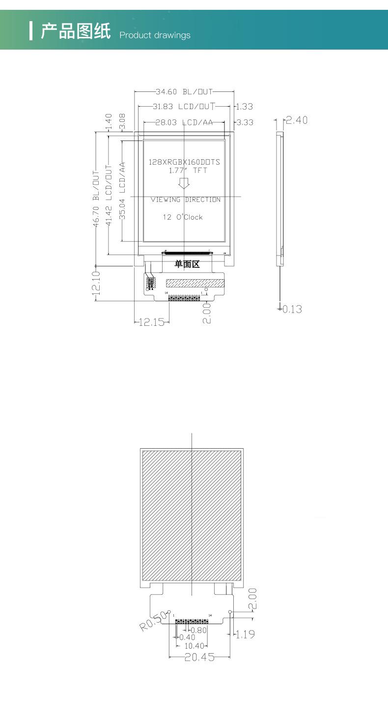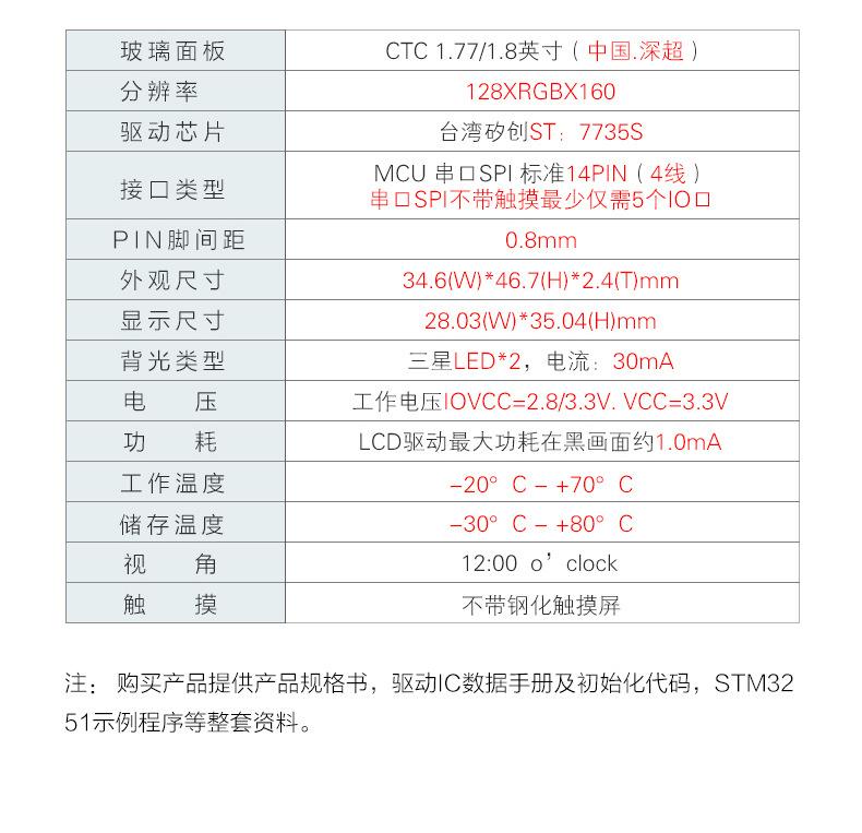 1.77/1.8 inch TN (without touch/7735S chip/14Pin soldering)