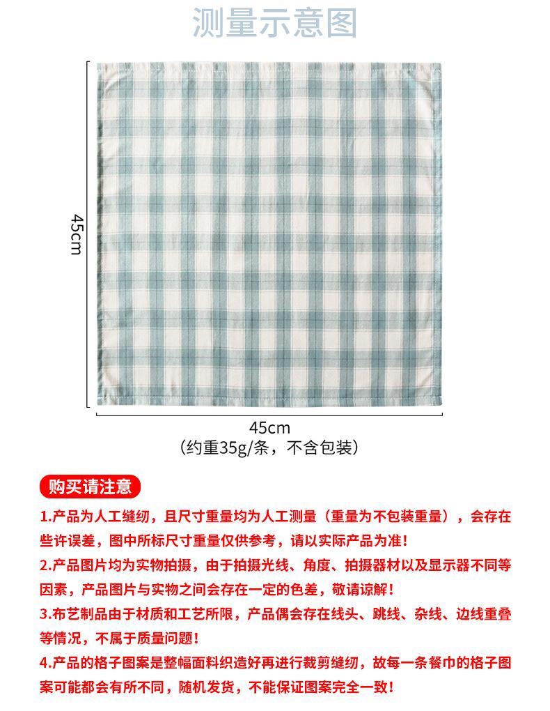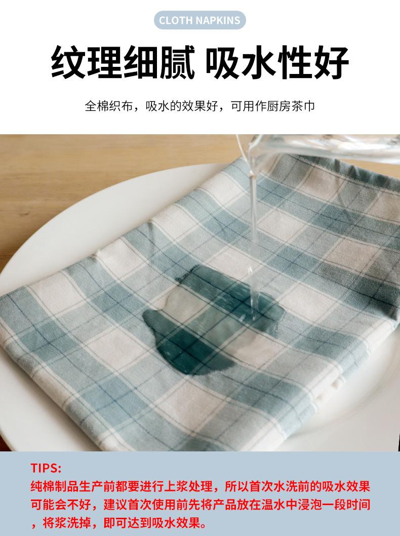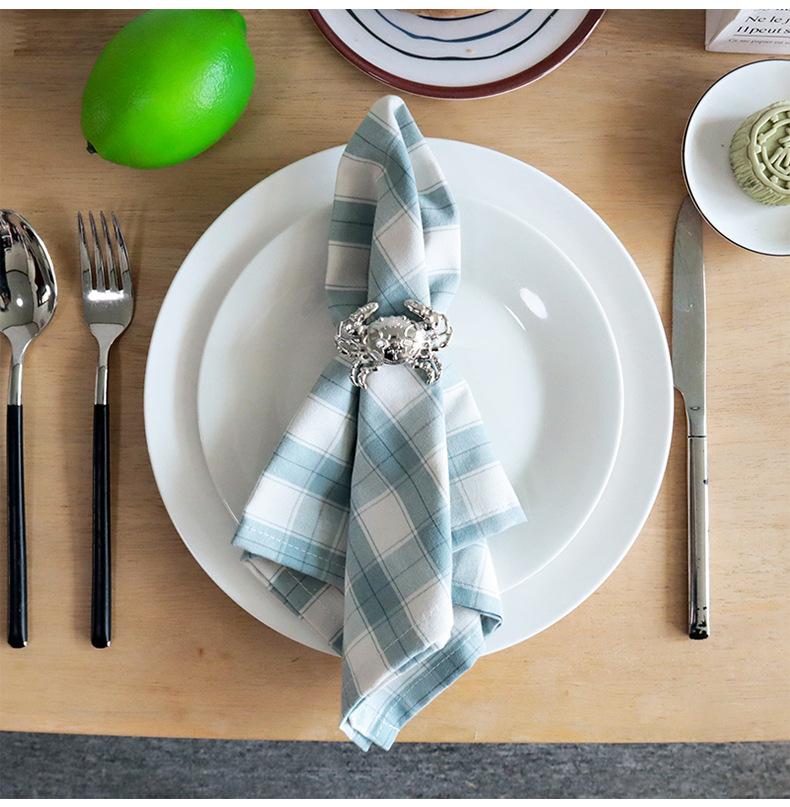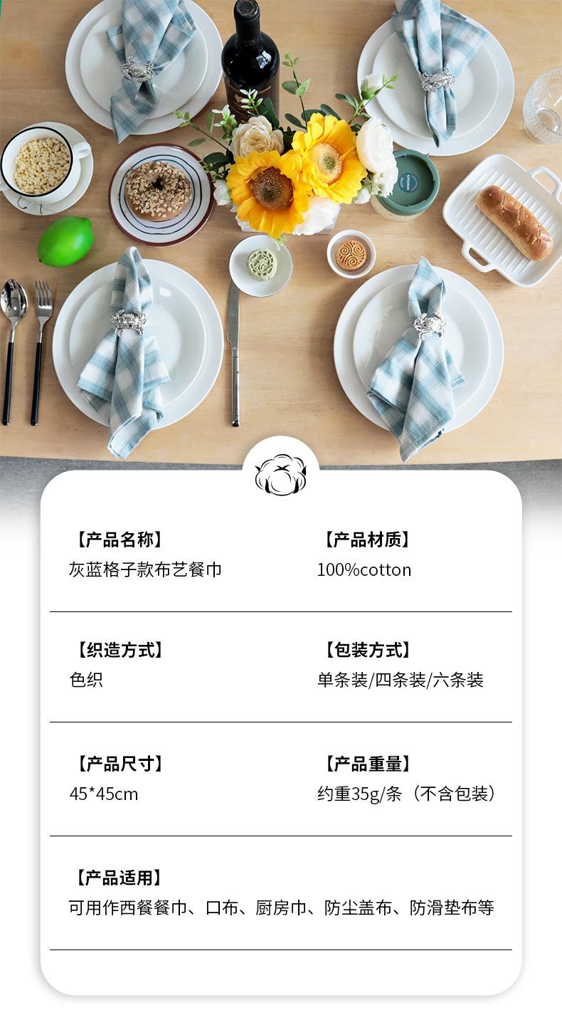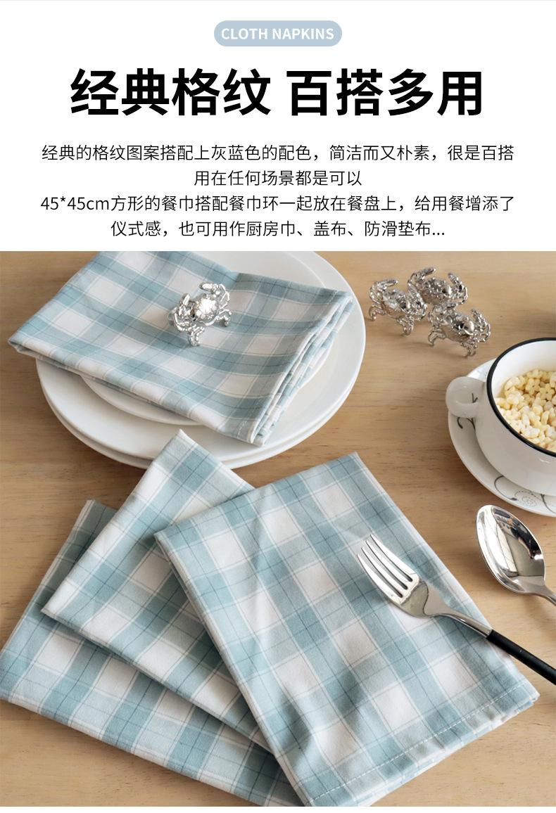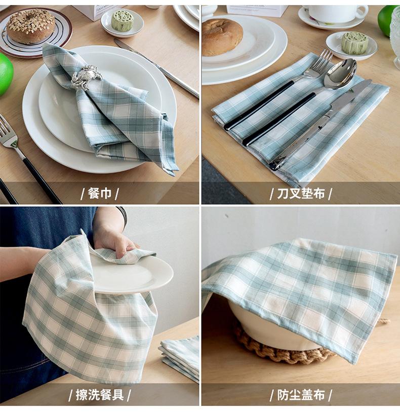 Servilleta cuadrada de tela de algodón azul grisáceo a cuadros para mesa de comedor de uso doméstico, toalla cuadrada