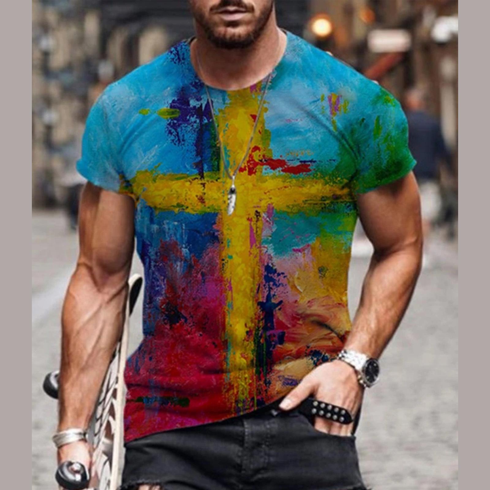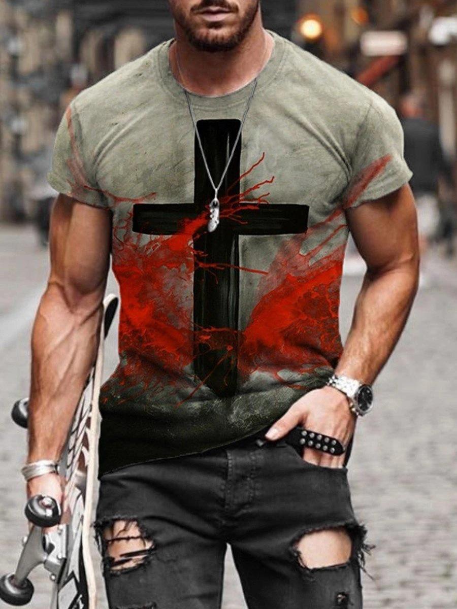 Camiseta informal con estampado de cruz y fe para hombre, estilo hipster urbano, de Amazon Wish AliExpress, nueva, estilo europeo y americano.