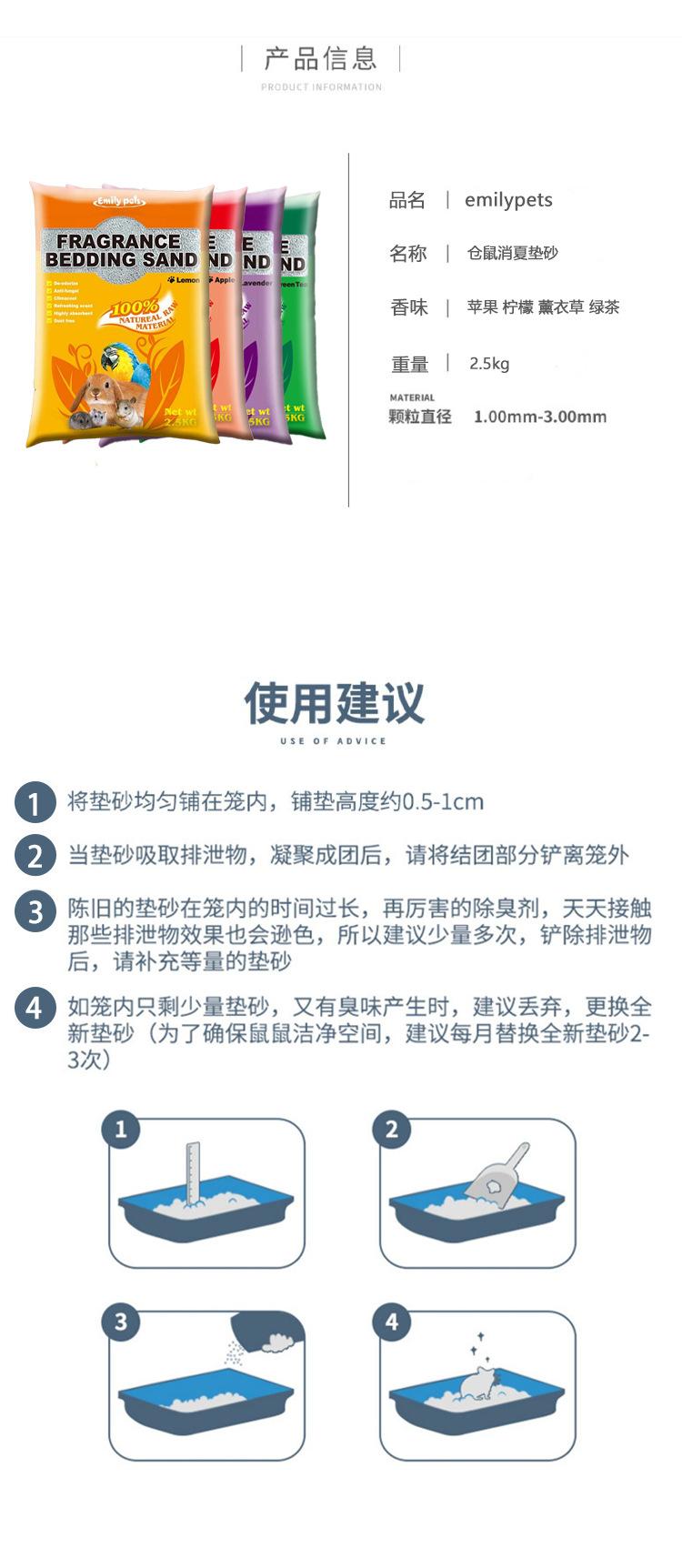 Arena para orina de hámster Emily mascota pequeña adecuada para absorción de agua cobertura de grupo olorosa seca partículas de bajo polvo 4 tipos de fragancia 2.5 kg