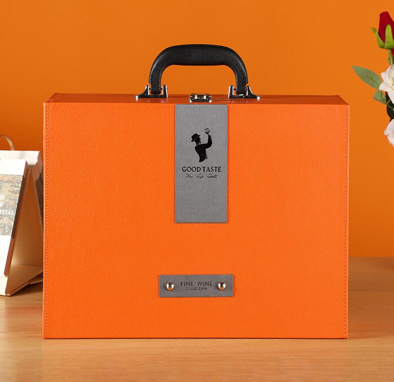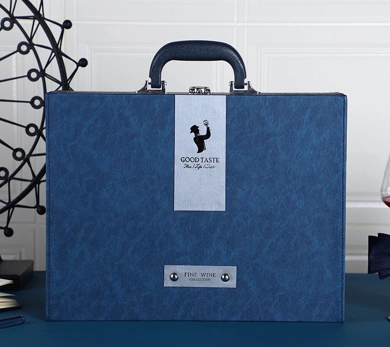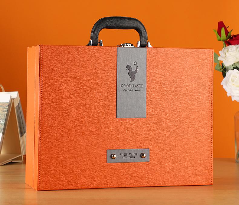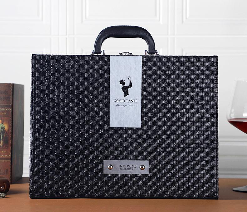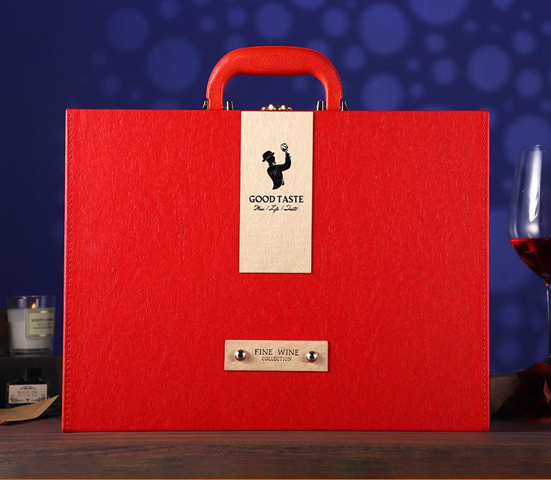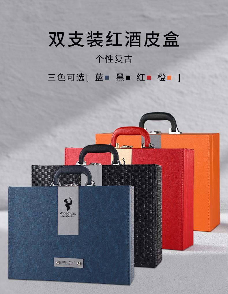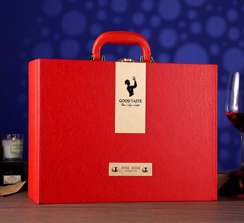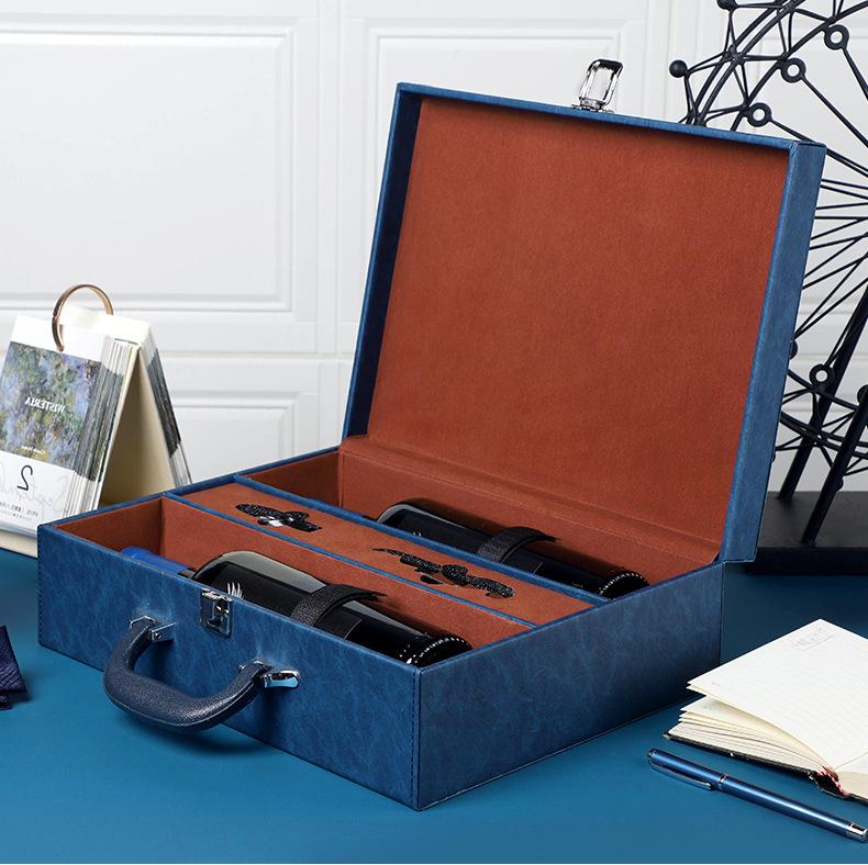 Caja de regalo de cuero para vino tinto de alta calidad personalizada, caja de regalo de vino tinto de paquete doble, caja de cuero para vino, se puede imprimir el logotipo