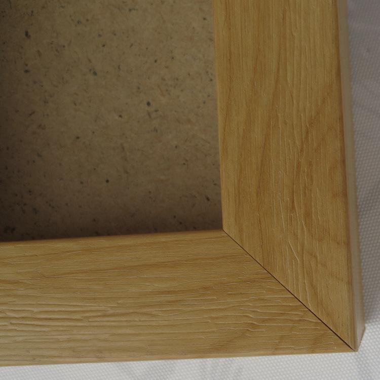 Marco: Resina Panel frontal: Vidrio (15*15cm), otros tamaños son de plexiglás (tablero transparente PS de alta transparencia) Panel trasero: MDF
