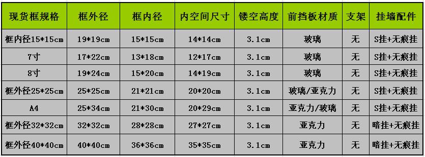Diámetro interior del marco: 15*15CM Ancho del marco: 2.5CM,